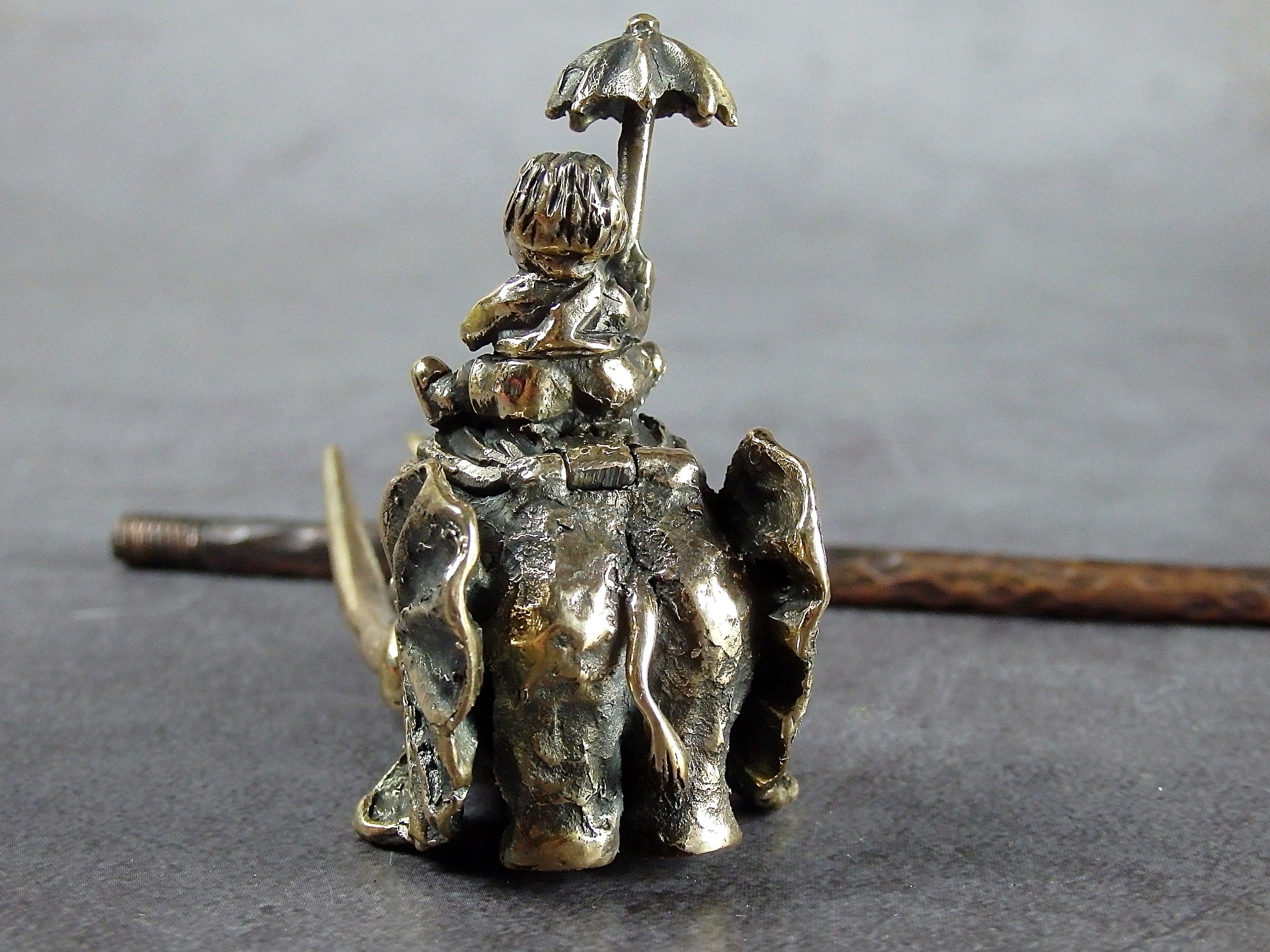 Large heavy bronze smoking pipe with a bowl in the shape of an elephant with a rider. The head has an opening lid and this is not only a smoking accessory, but also a wonderful souvenir. The mouthpiece is made of copper, it is screwed on, can have a length (from 3 to 30 cm) and a shape at the request of the buyer. The pipe is working, not decorative, the model is tested by the master.