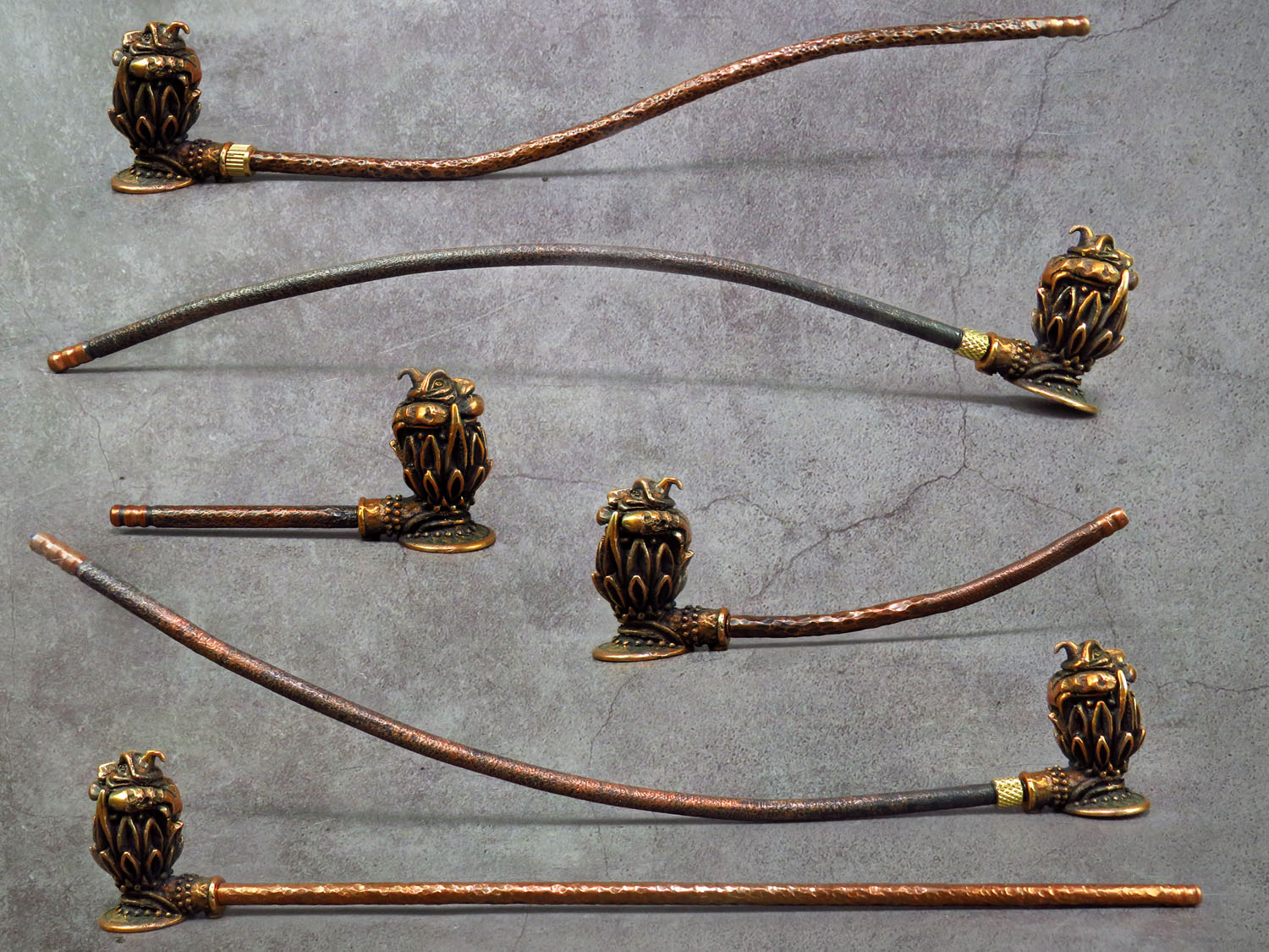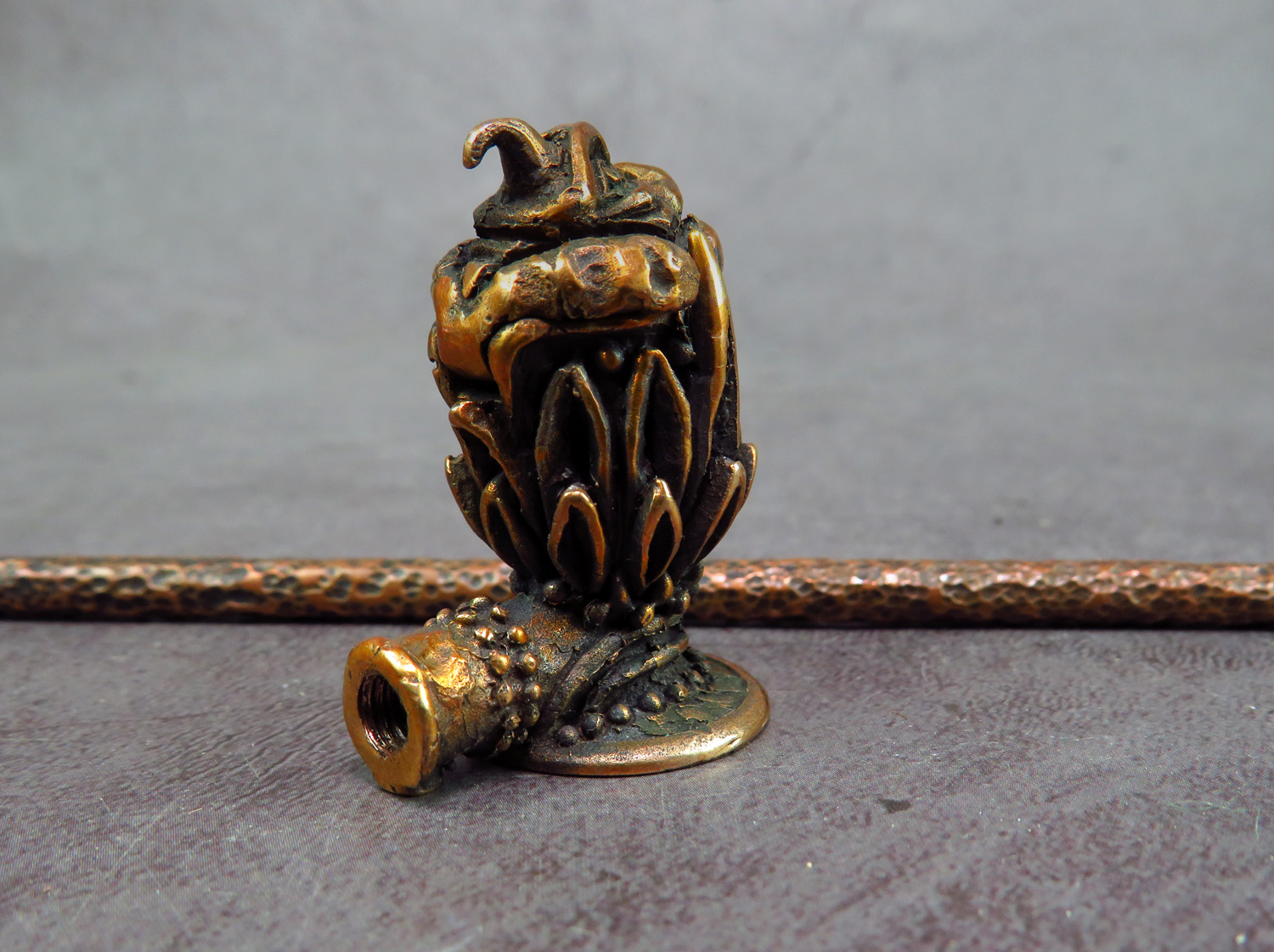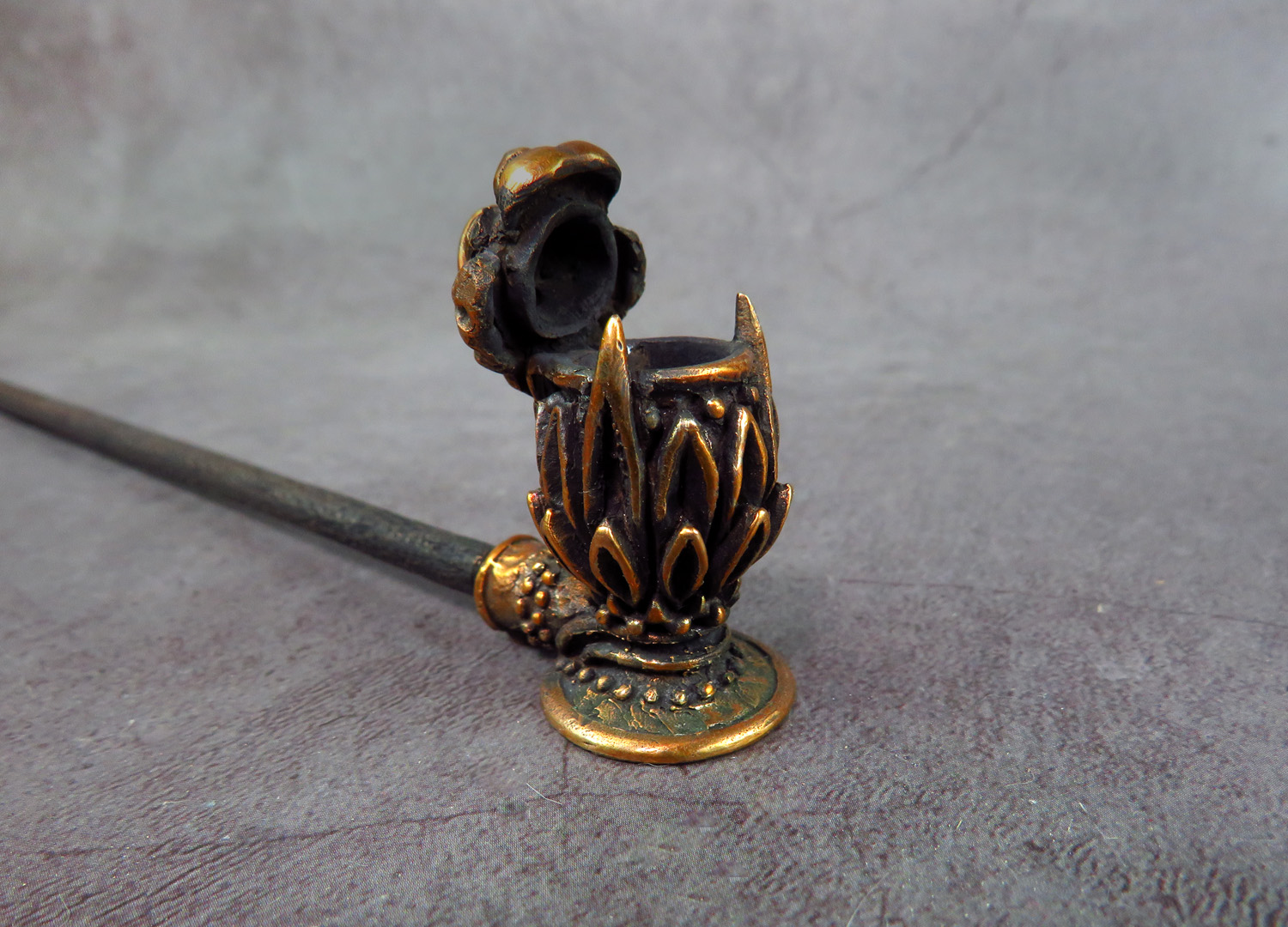 The pipe is made by hand (without using computer technology) from bronze according to the author's sketch.