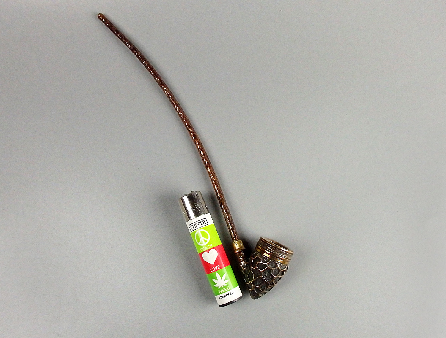 Freehand churchwarden bronze pipe with original grid pattern. The mouthpiece is made of copper, it is screwed on, can have a length (from 5 to 30 cm) and a shape at the request of the buyer. The pipe is working, not decorative, the model is tested by the master.