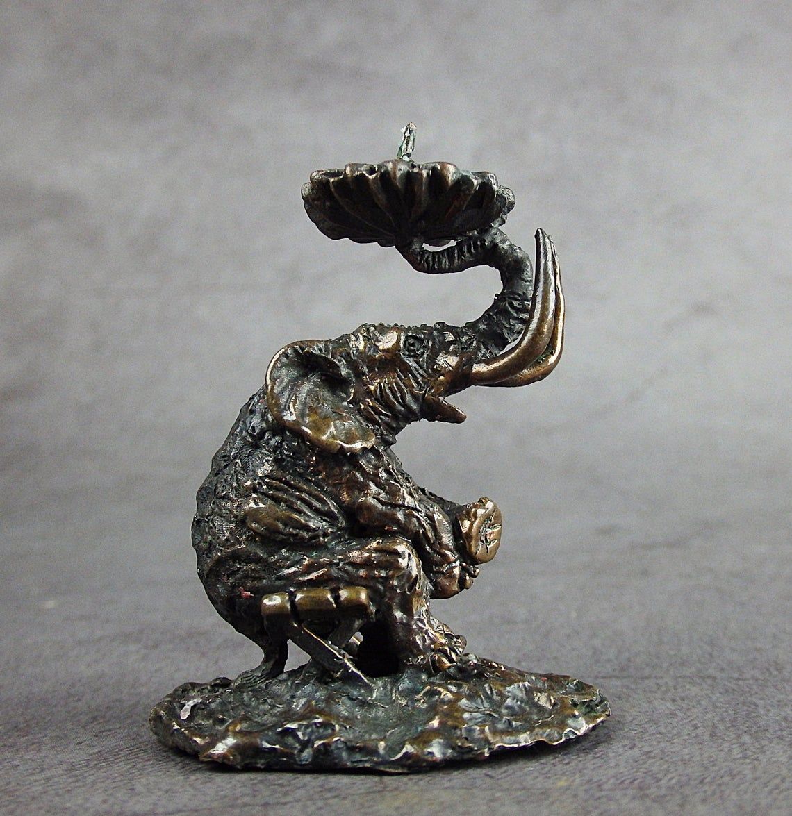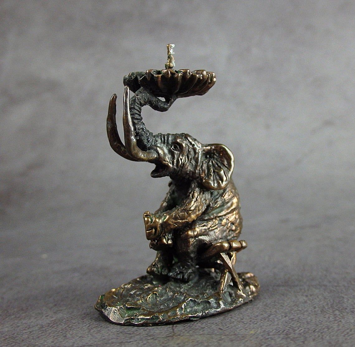 Funny bronze candlestick. This small resting pensive elephant will be a great symbolic gift for people with a philosophical mindset, parents or caring spouses, and lovers of original figurines.