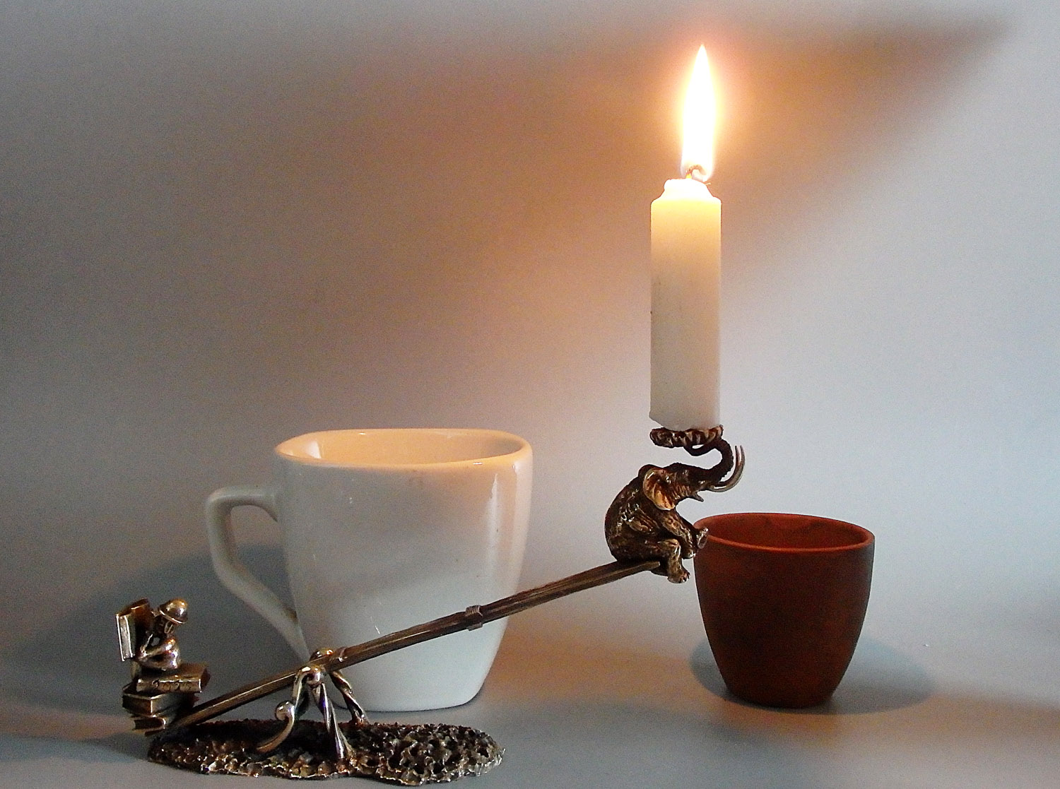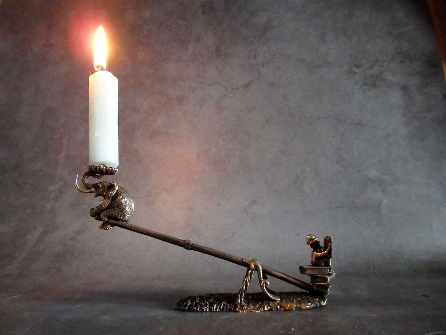 This candlestick "Two on a swing" can be in a set with a candlestick "Elephant on the bench".