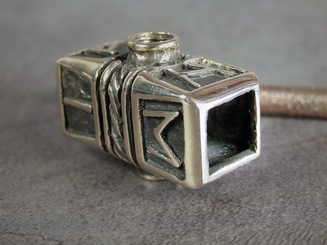 Mjölnir pipe, double-sided Thor's Hammer with runes