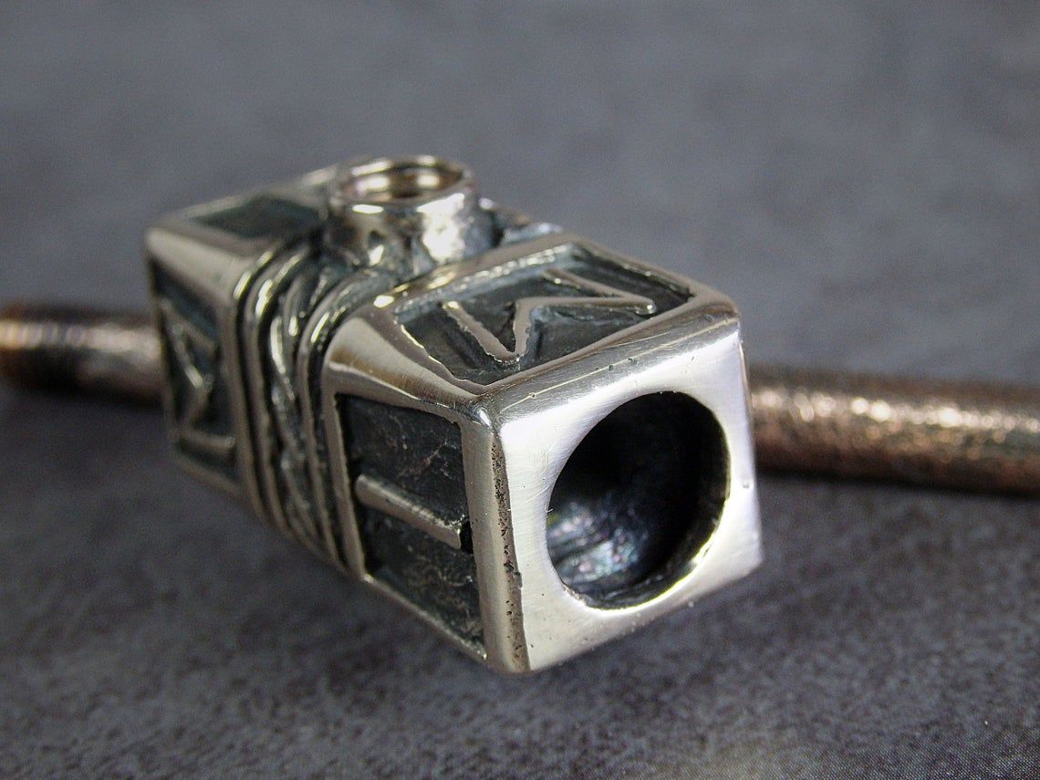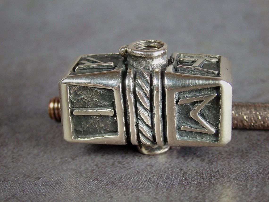 Double-sided smoking pipe, stylized as Thor's hammer. At the ends of the pipe there are bowls of larger and smaller sizes, for different tastes and volumes. A Hammer is decorated with runes - the inscription "Freedom" in German (FREIHEIT).
