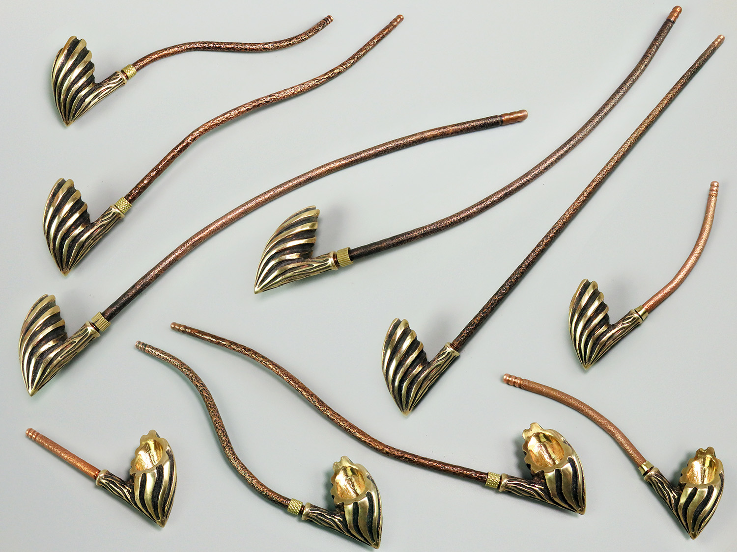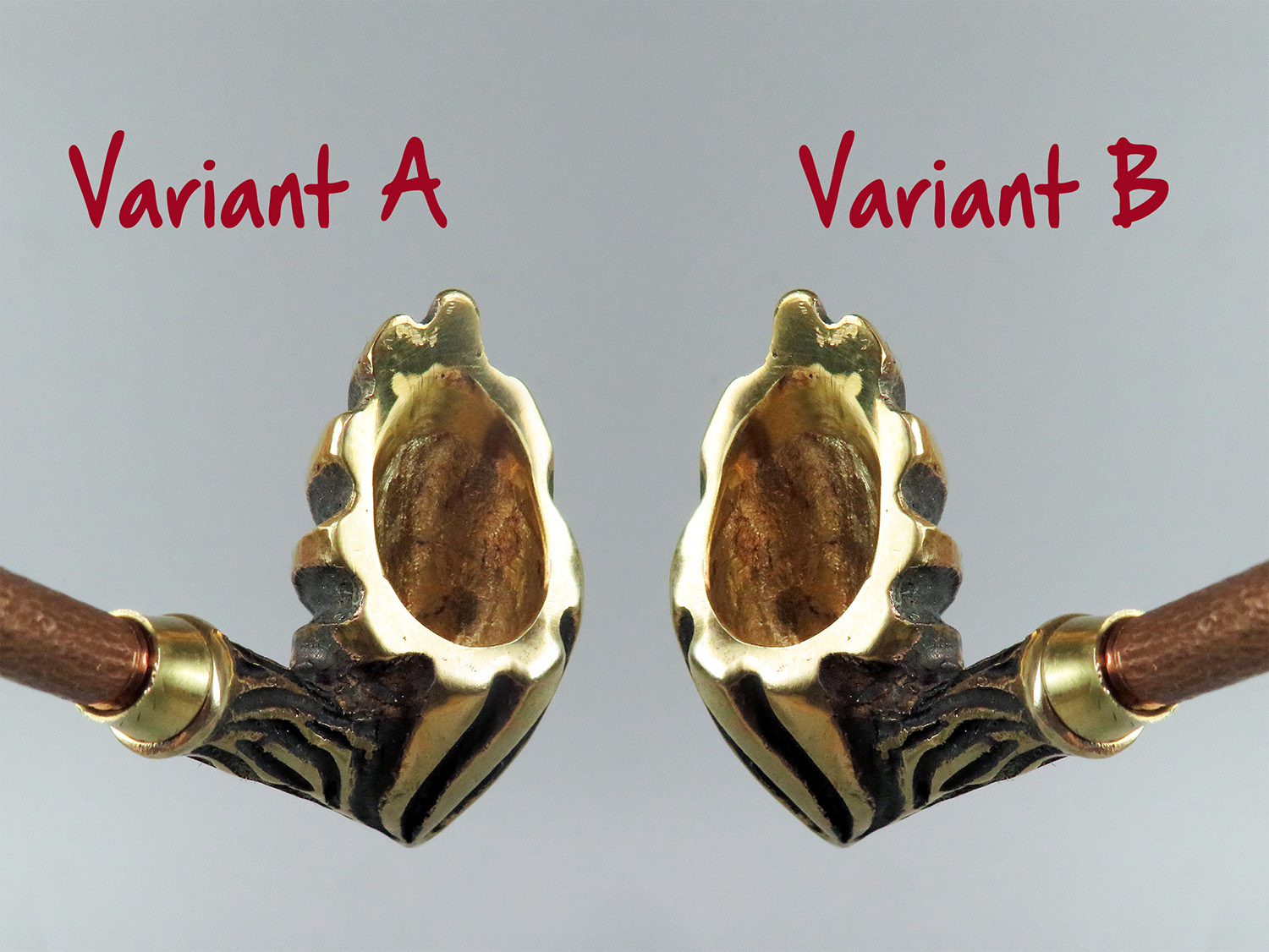 The mouthpiece is made of copper, it is screwed on, can have a length (from 5 to 30 cm) and a shape at the request of the buyer. The pipe is working, not decorative, the model is tested by the master.