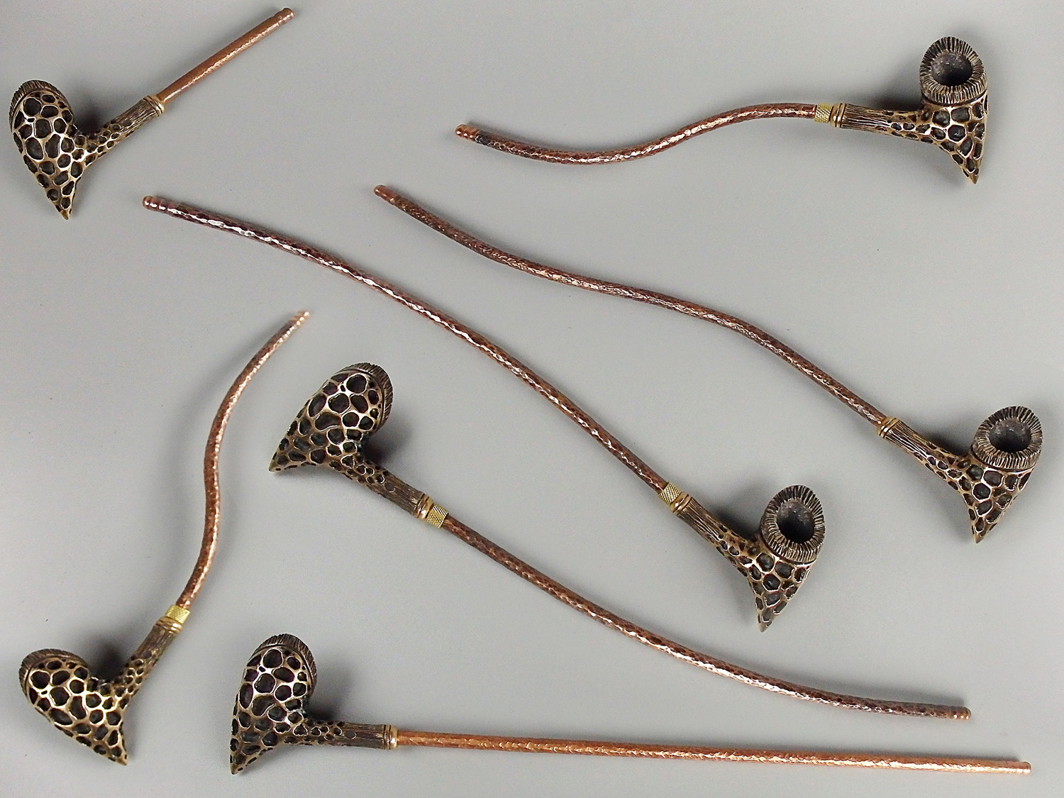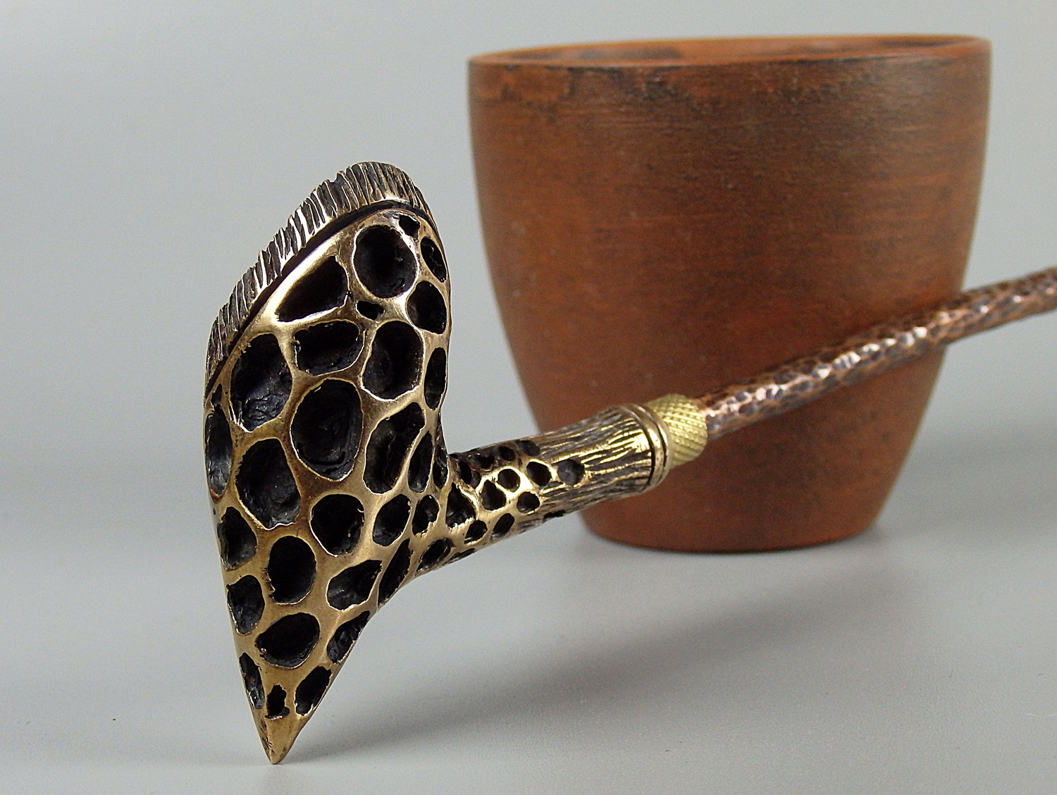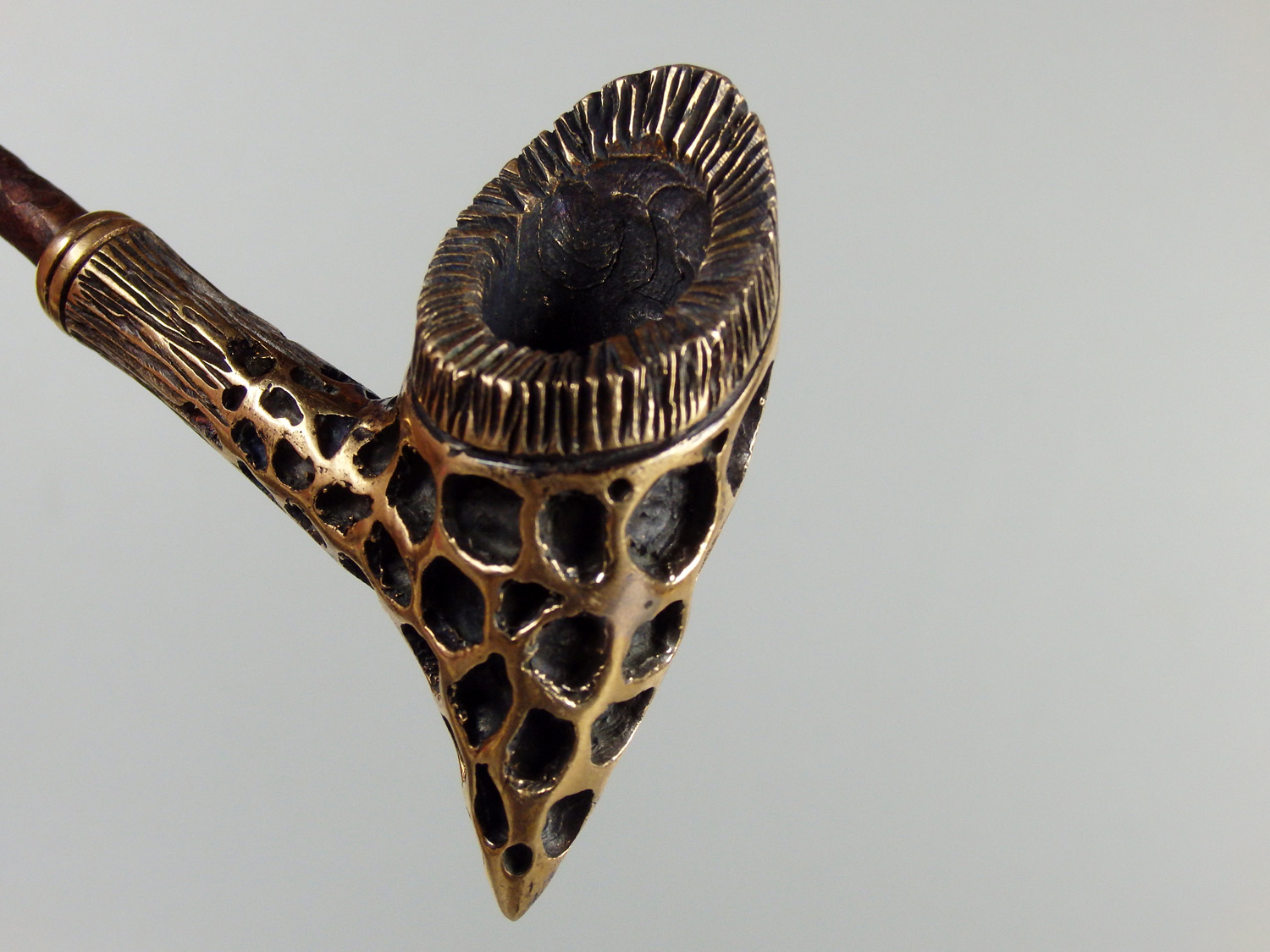 The pipe is made by hand (without using computer technology) from bronze according to the author's sketch.