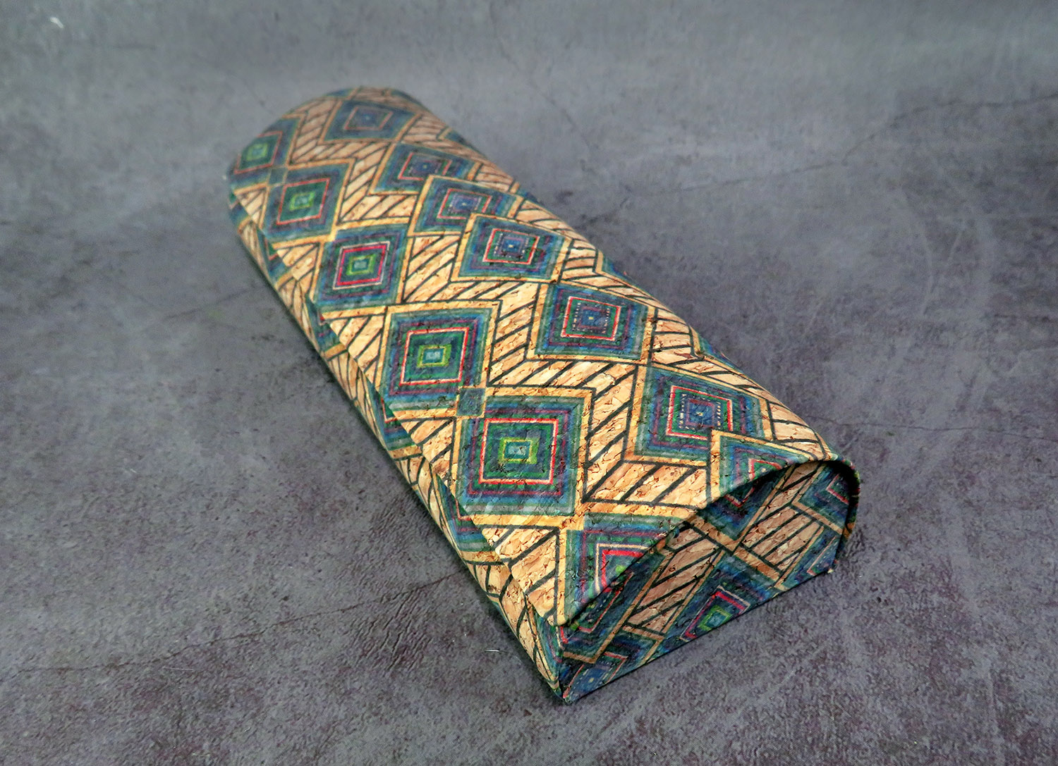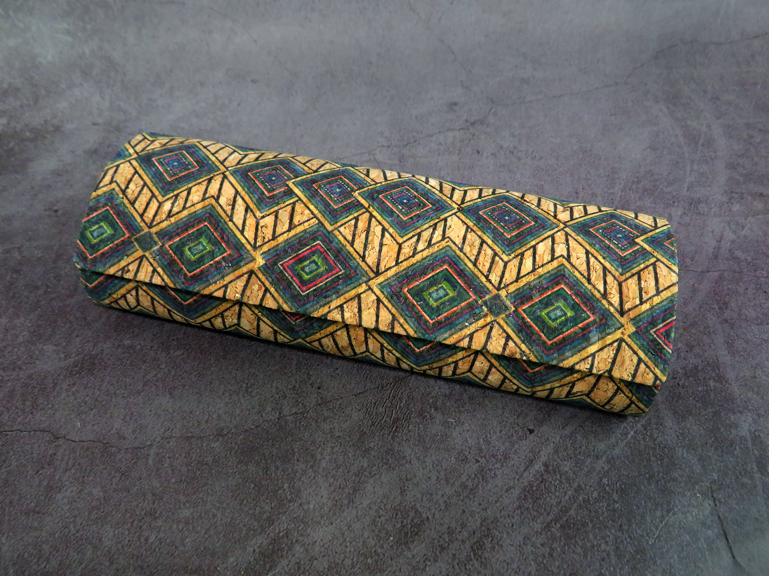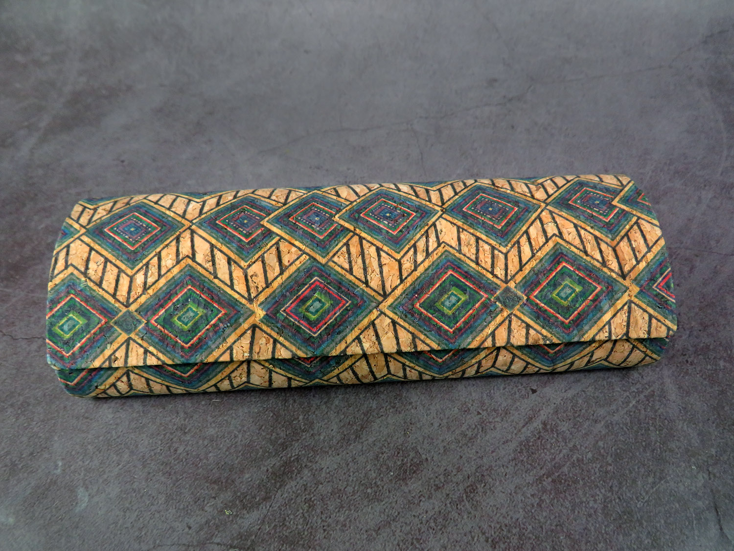 Hard case made of faux leather and artificial cork in rustic style.