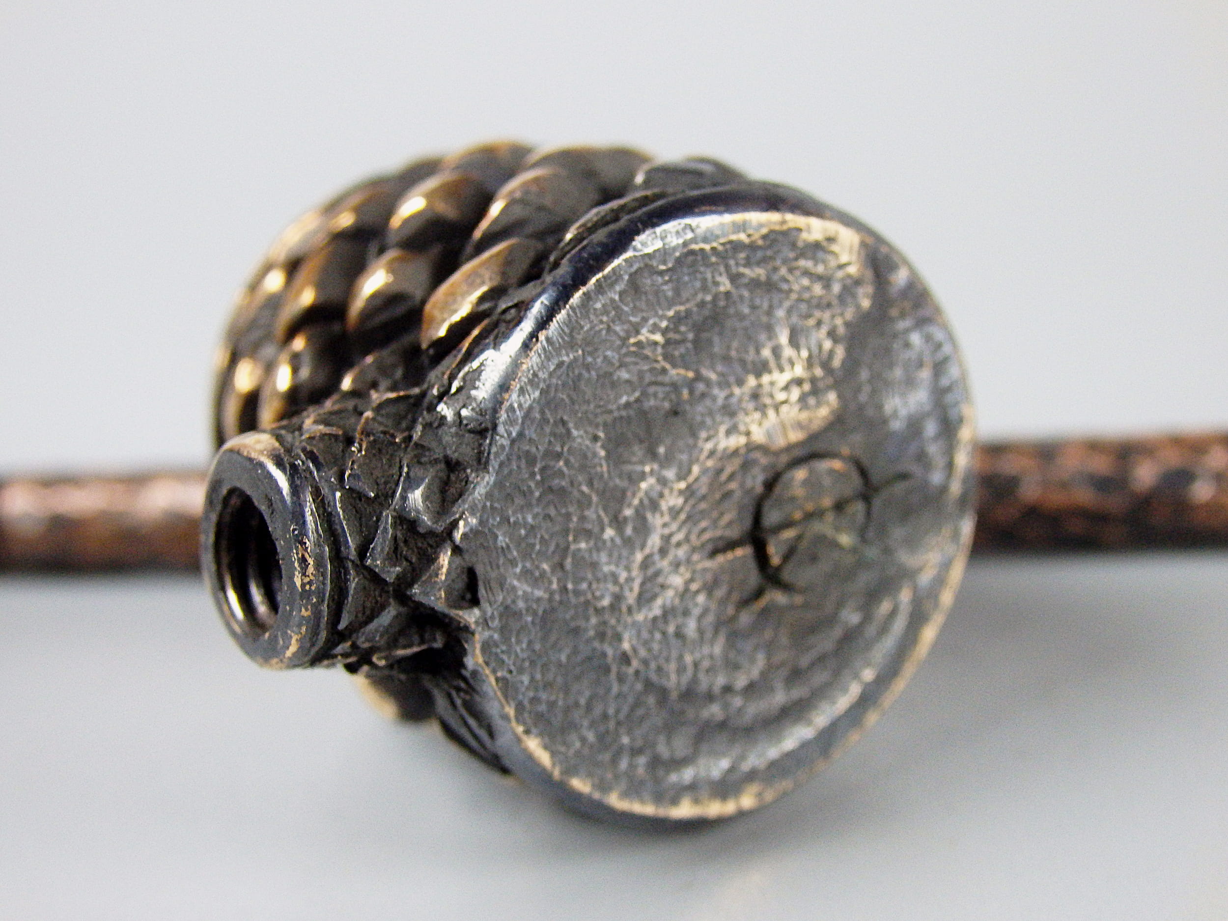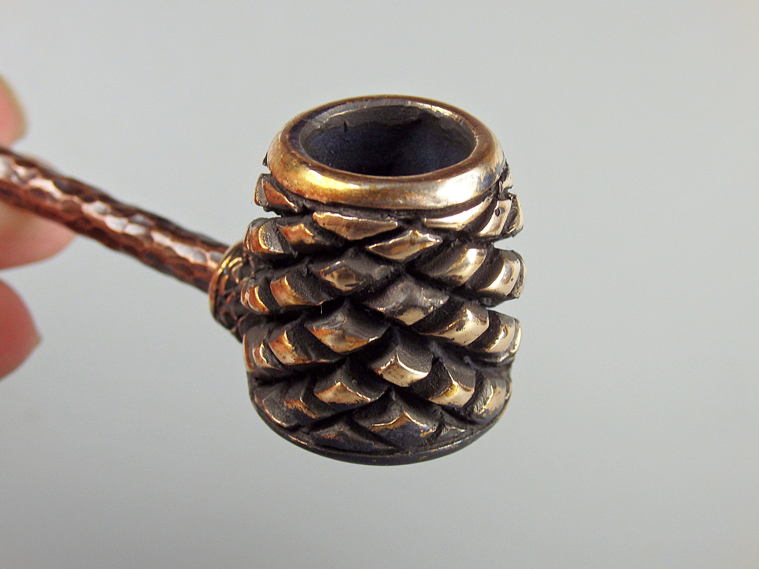 Bronze smoking pipe with a bowl in the shape of pineapple without top. The mouthpiece is made of copper, it is screwed on, can have a length (from 3 to 30 cm) and a shape at the request of the buyer. The pipe is working, not decorative, the model is tested by the master.
