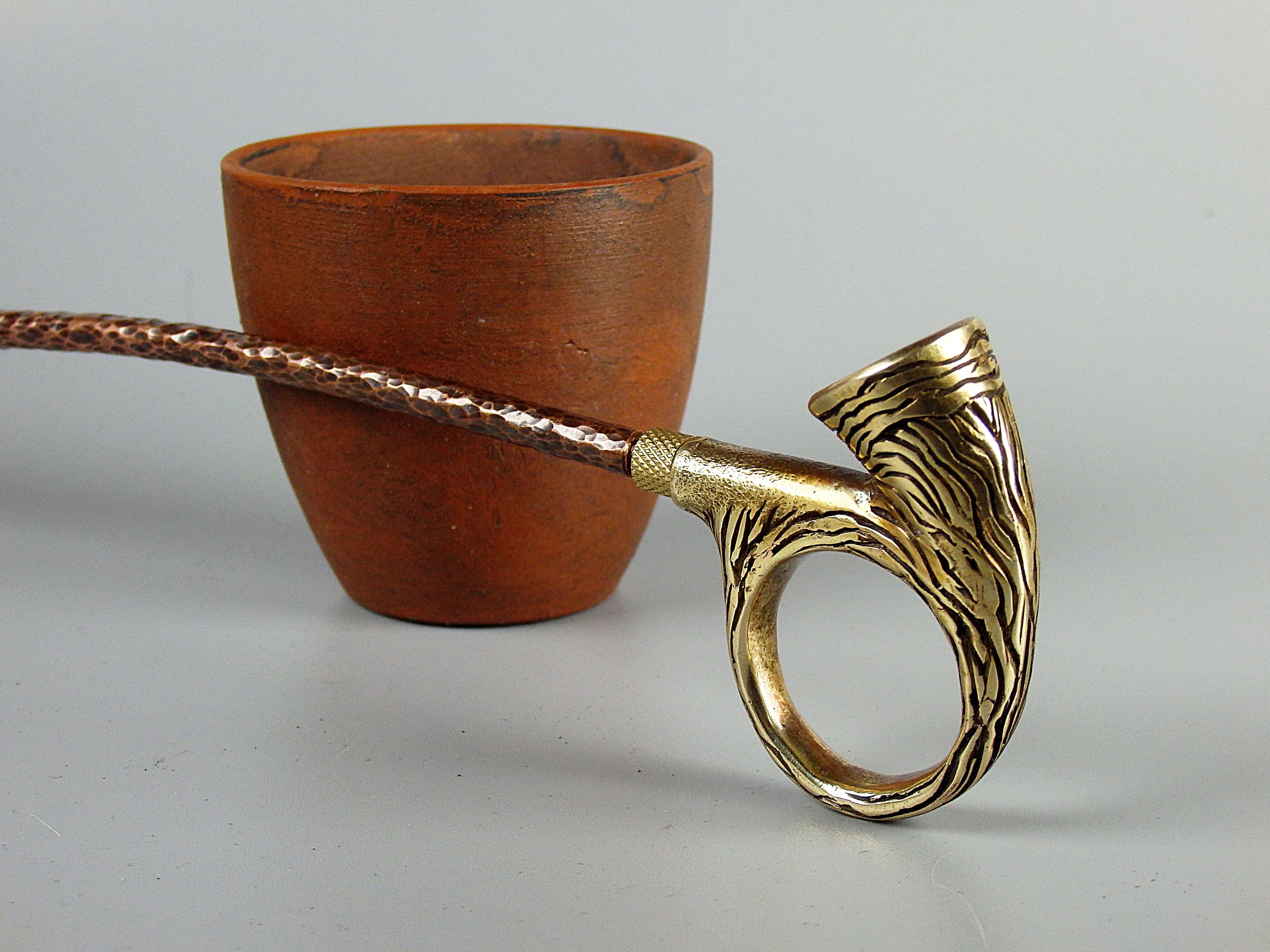 An original bronze smoking pipe that can be put on your finger. This finished ring is one size. The diameter of the ring is quite large - 0.94 inches (24 mm), please consider this when you place an order. If you would like a different ring size or add text, please order here - https://pipeoclock.com/pipe-ring-to-order/.
