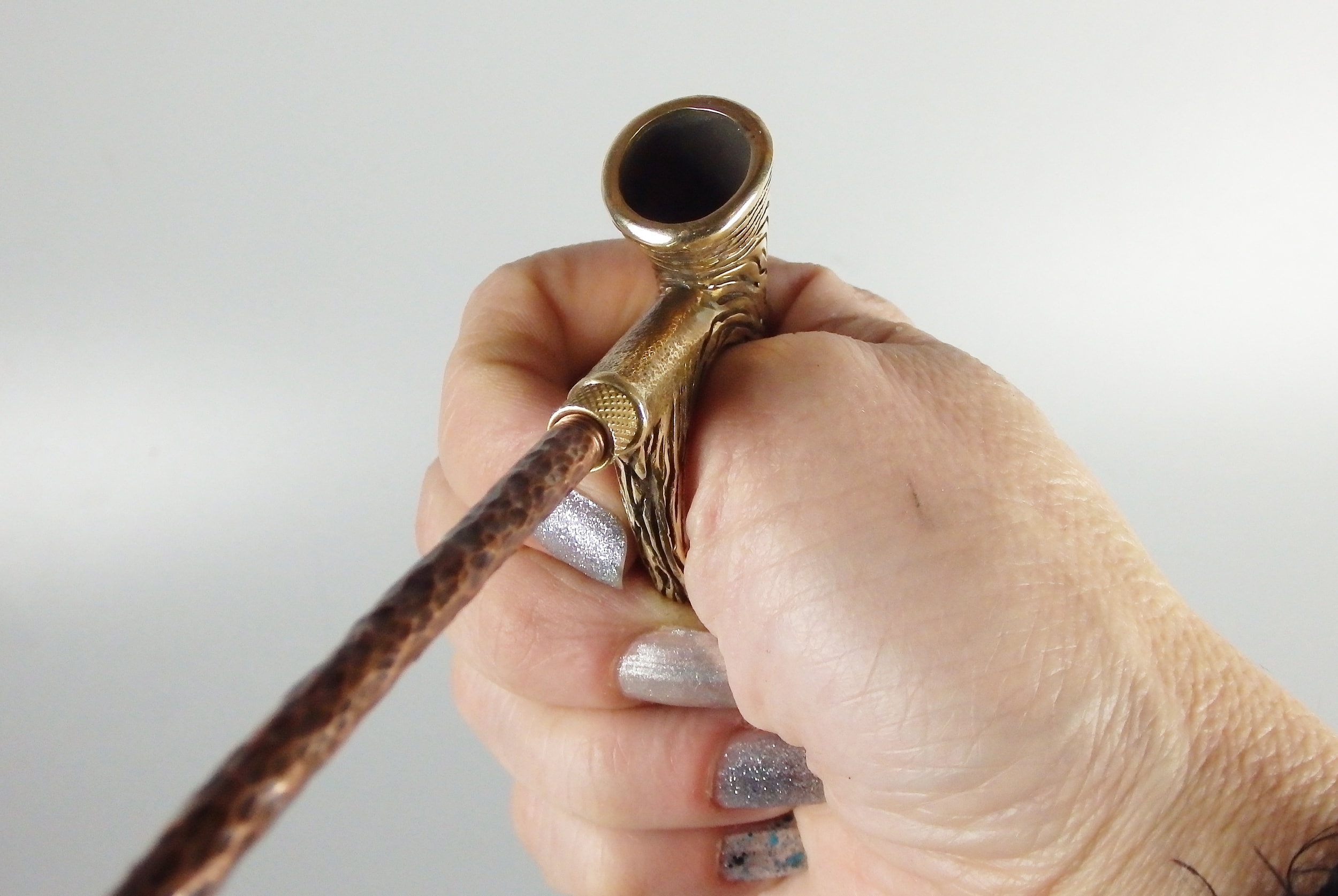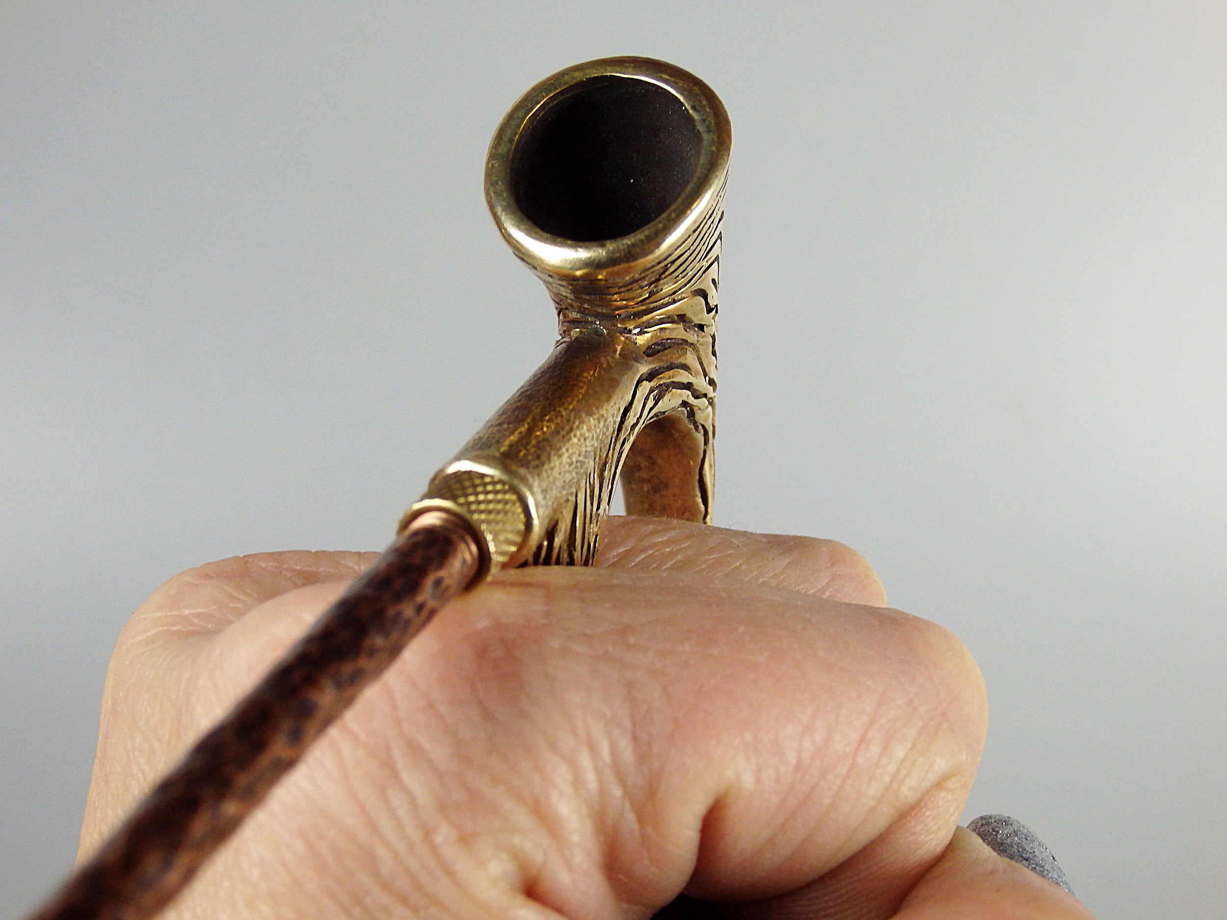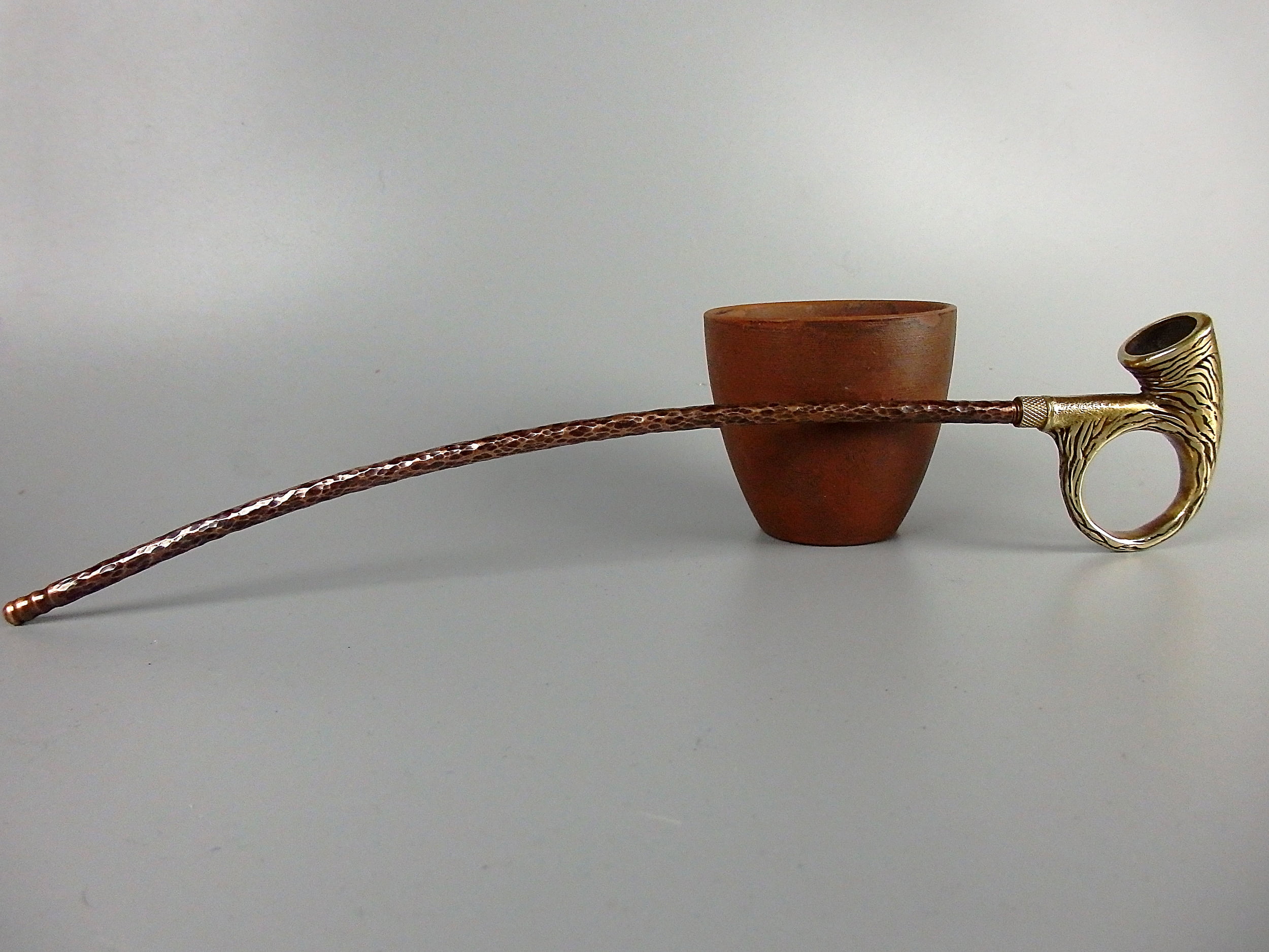 The mouthpiece is made of copper, it is screwed on, can have a length (from 3 to 30 cm) and a shape at the request of the buyer. The pipe is working, not decorative, the model is tested by the master.