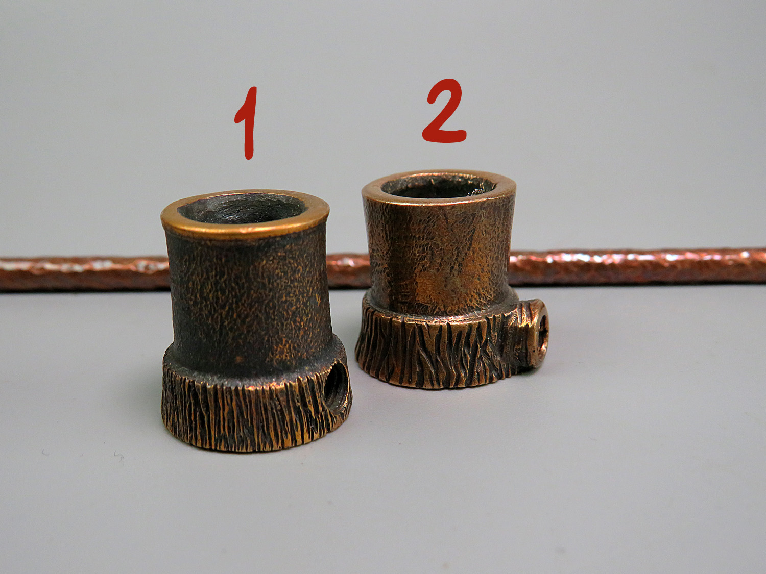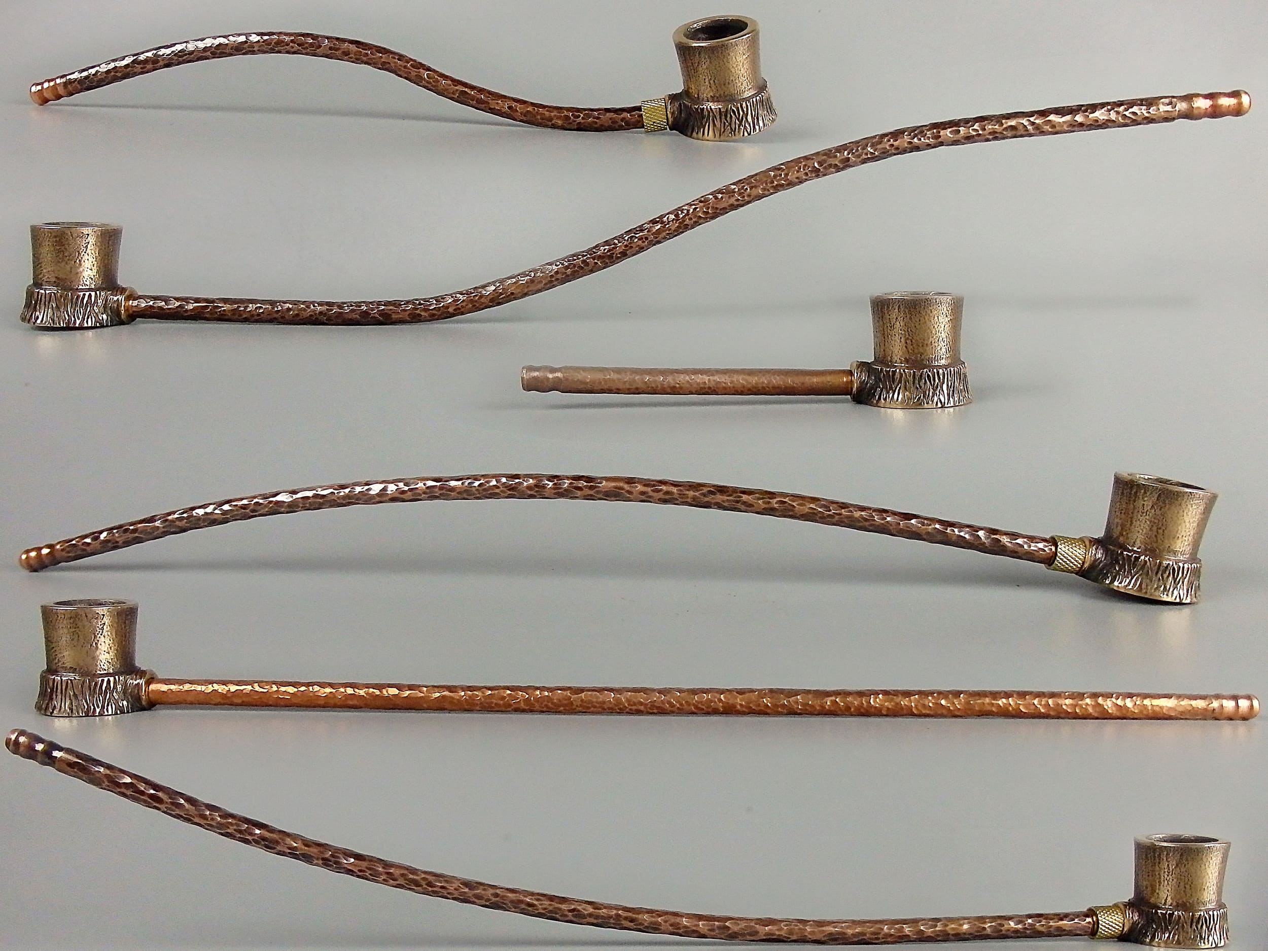 The bowls are available in two versions. The mouthpiece is made of copper, it is screwed on, can have a length (from 3 to 30 cm) and a shape at the request of the buyer. The pipe is working, not decorative, the model is tested by the master.