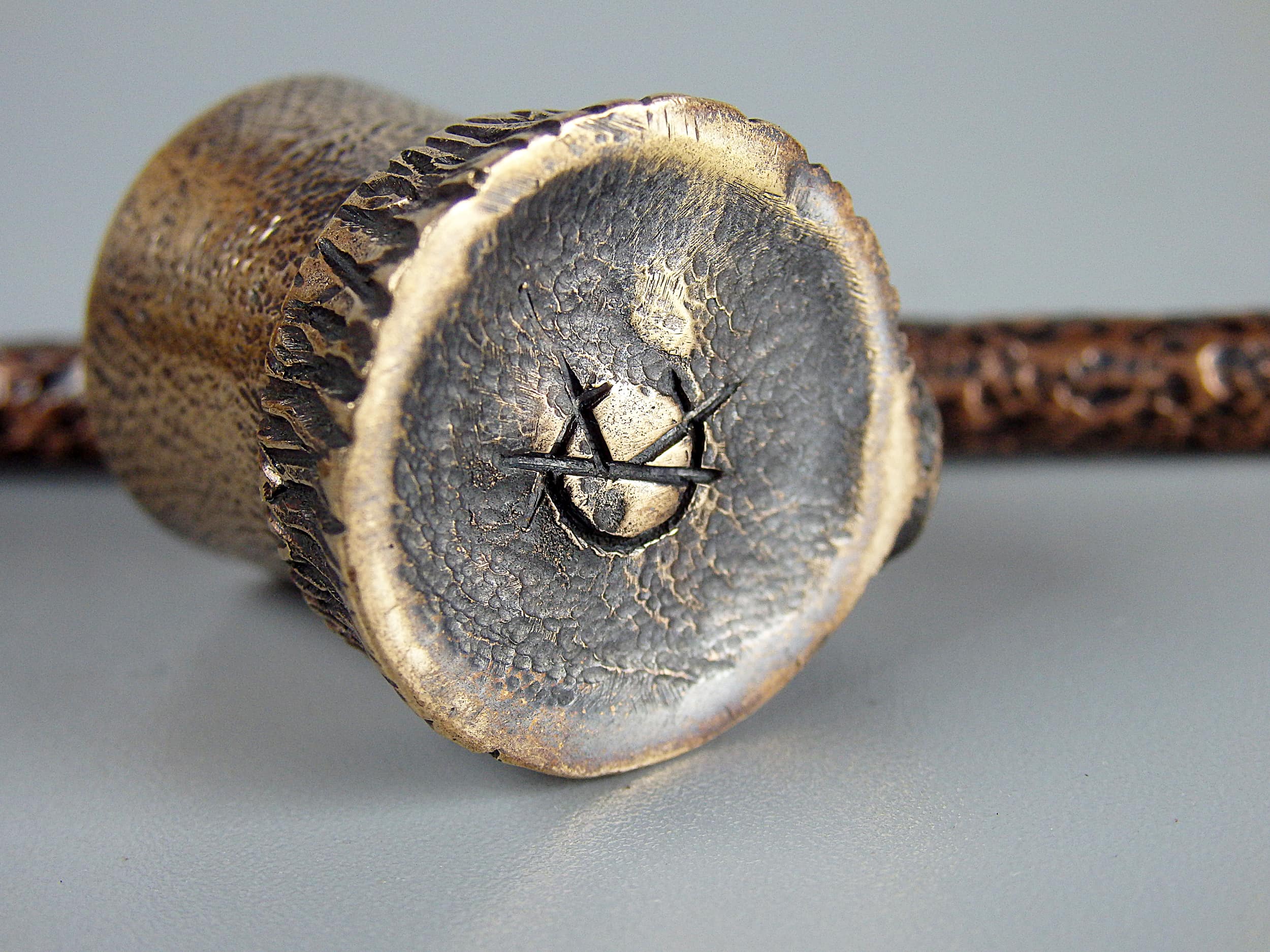 To make this item, a wax model was cut out by hand. Then, using the lost wax method, bronze parts were cast.