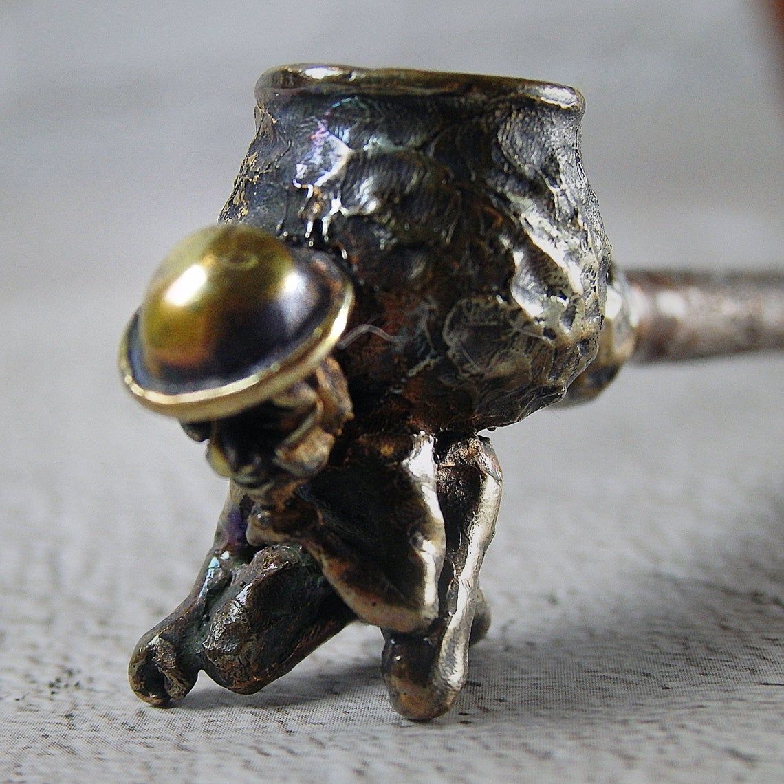 Small bronze smoking pipe with bowl in the shape of a porter carrying a pot-bowl. The mouthpiece is made of copper, it is screwed on, can have a length (from 3 to 30 cm) and a shape at the request of the buyer. The pipe is working, not decorative, the model is tested by the master.