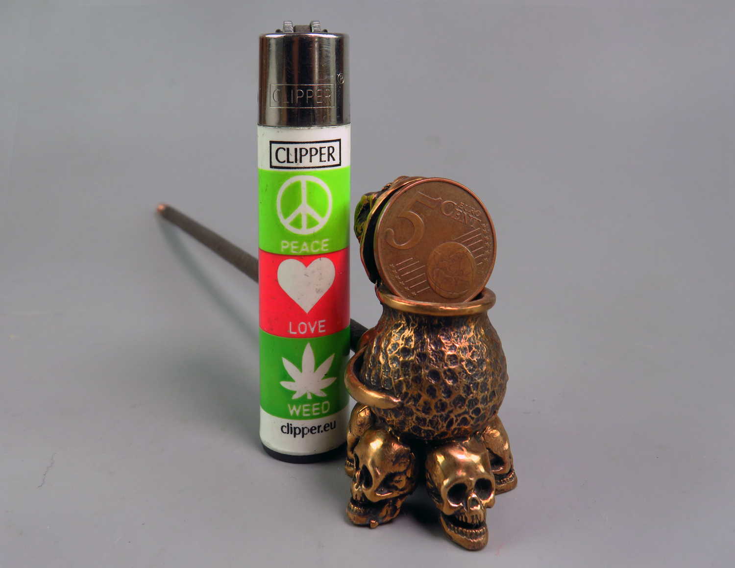 The skull is made by hand (without using computer technology) from bronze according to the author's sketch.