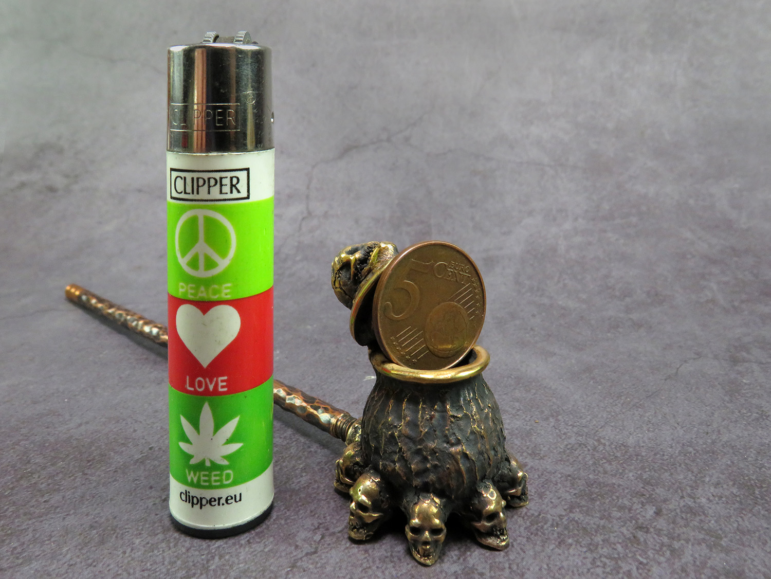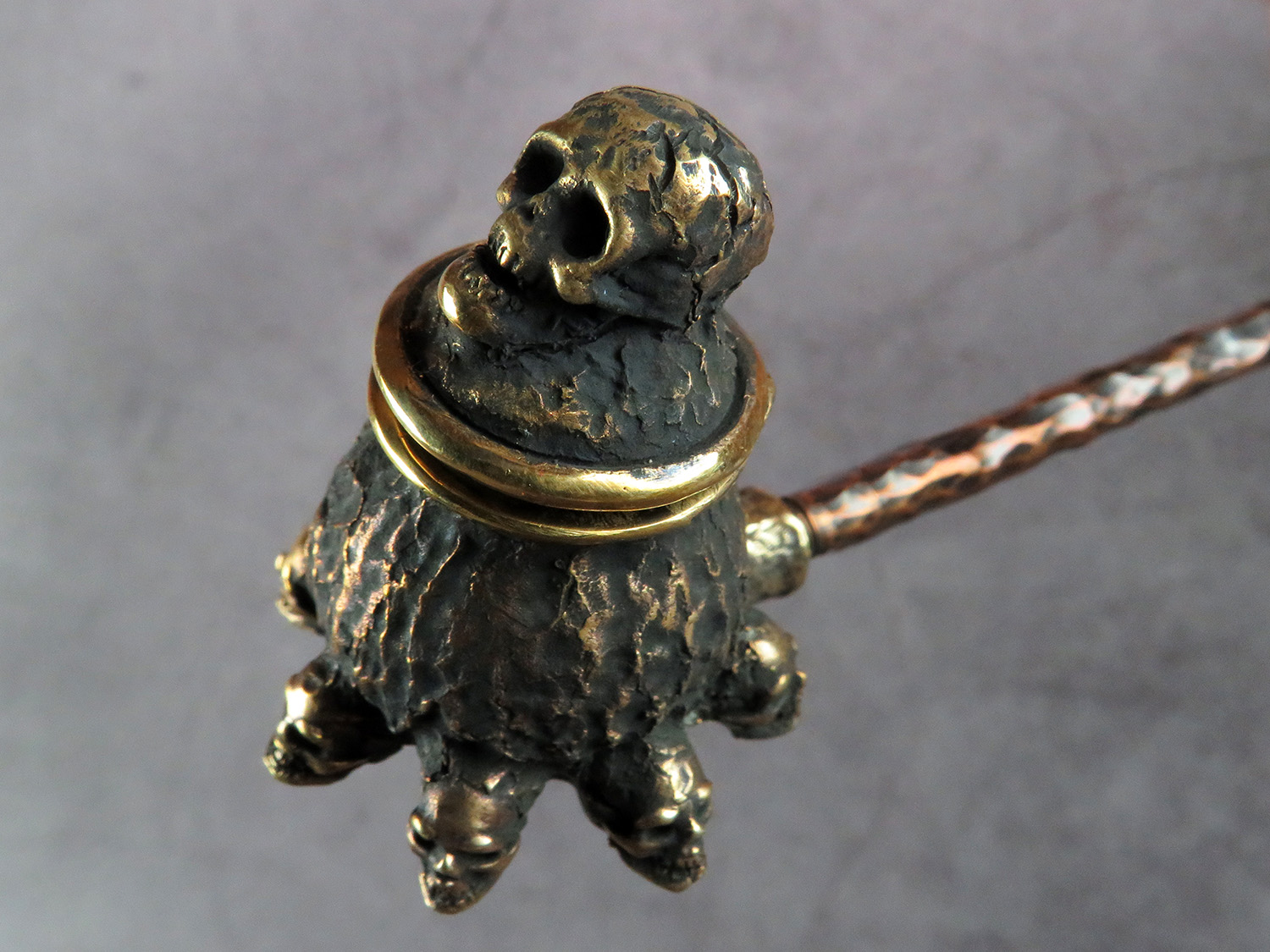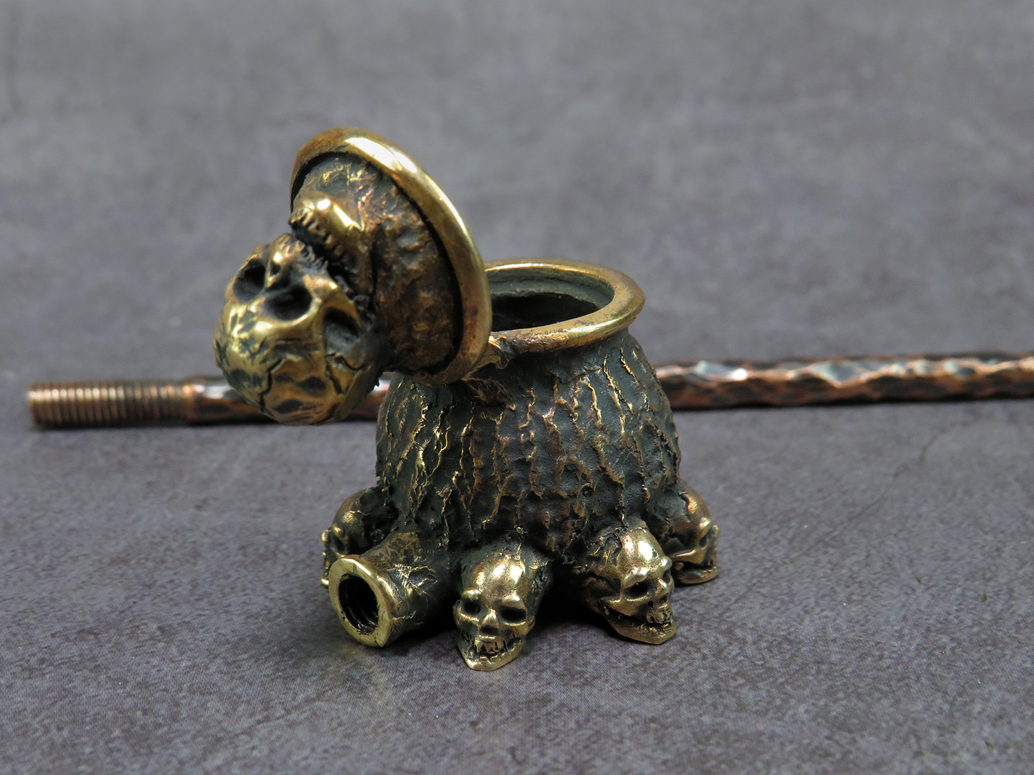The skull is made by hand (without using computer technology) from bronze according to the author's sketch.