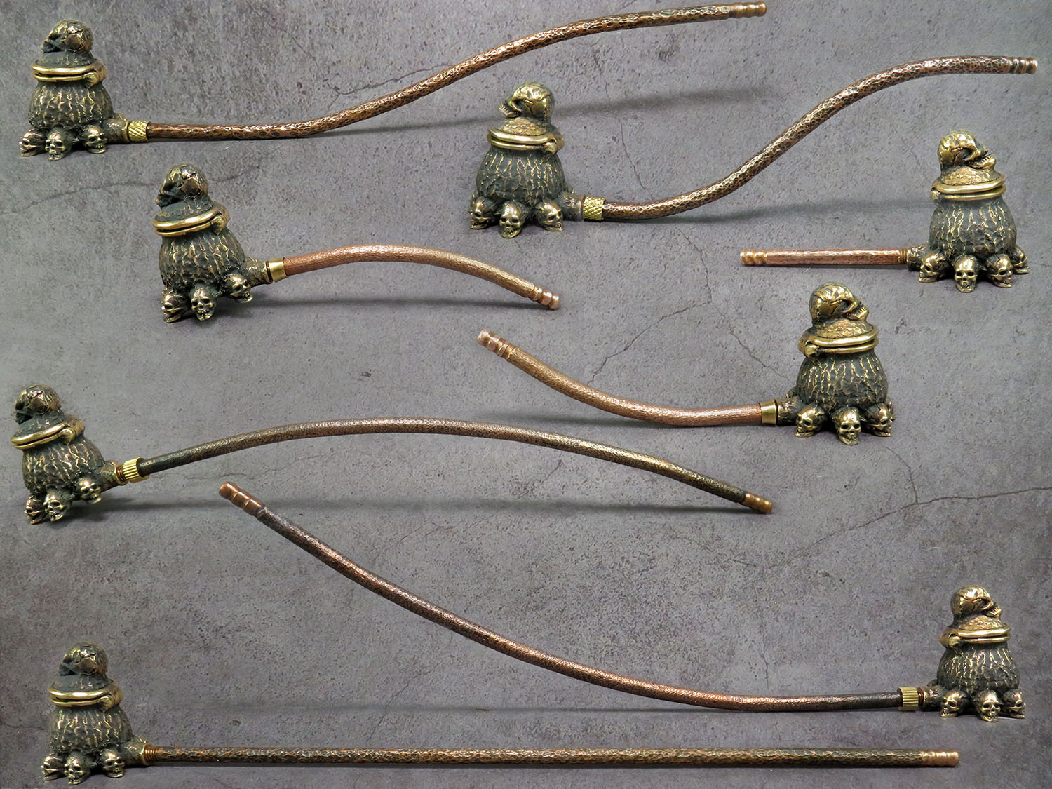 The mouthpiece is made of copper, it is screwed on, can have a length (from 3 to 30 cm) and a shape at the request of the buyer. The pipe is working, not decorative, the model is tested by the master.
