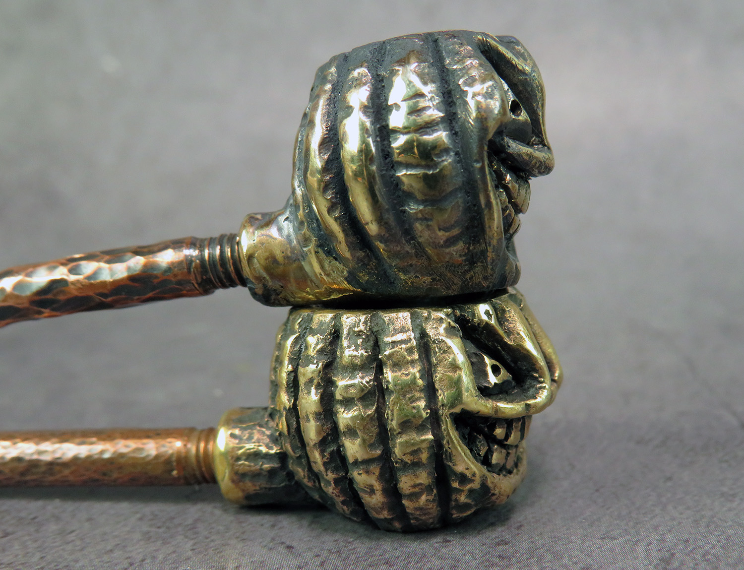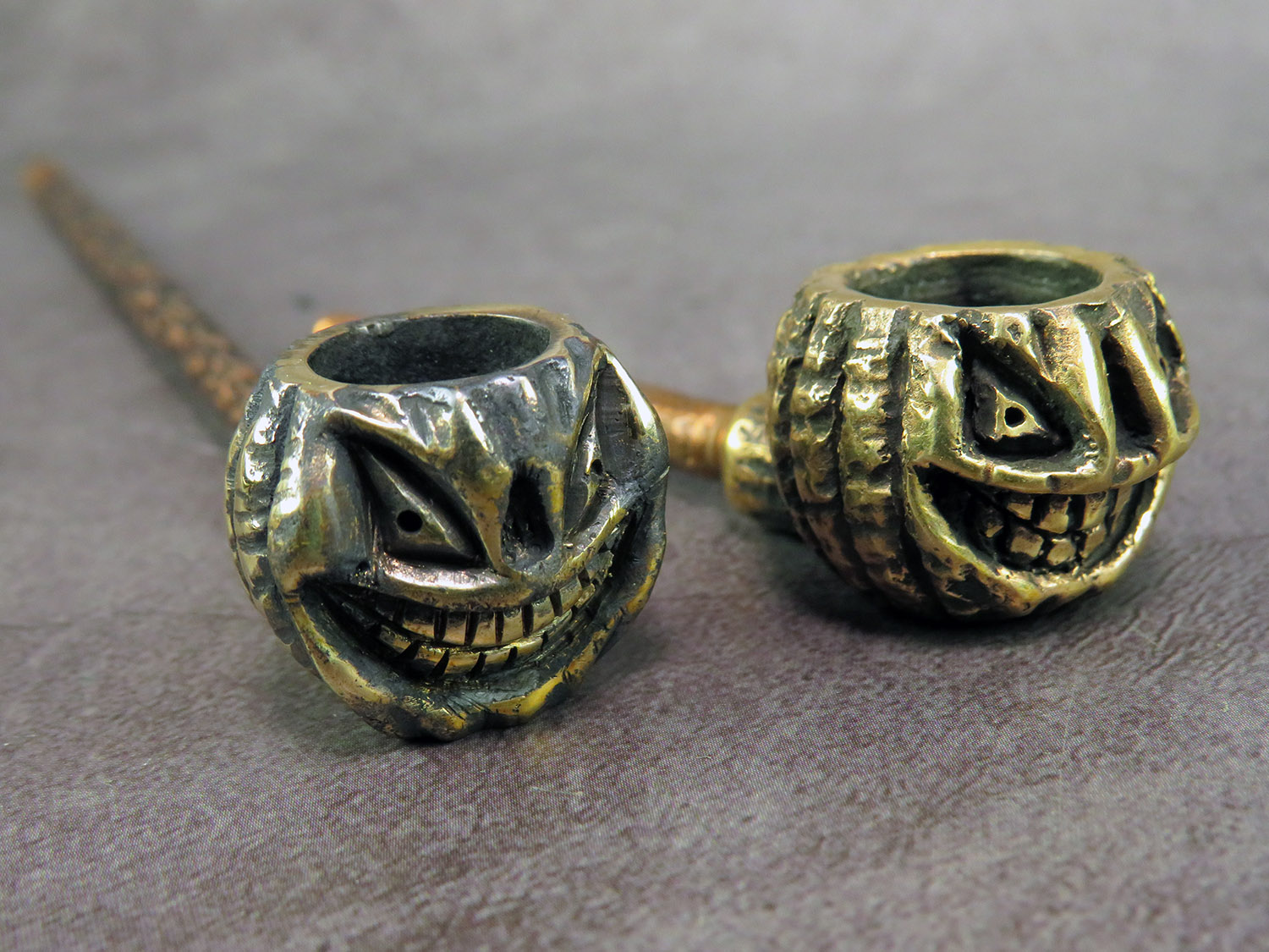 A non-trivial Halloween gift - bronze smoking pipe in the shape Pumpkin Jack. The mouthpiece is made of copper, it is screwed on, can have a length (from 3 to 30 cm) and a shape at the request of the buyer. The pipe is working, not decorative, the model is tested by the master.