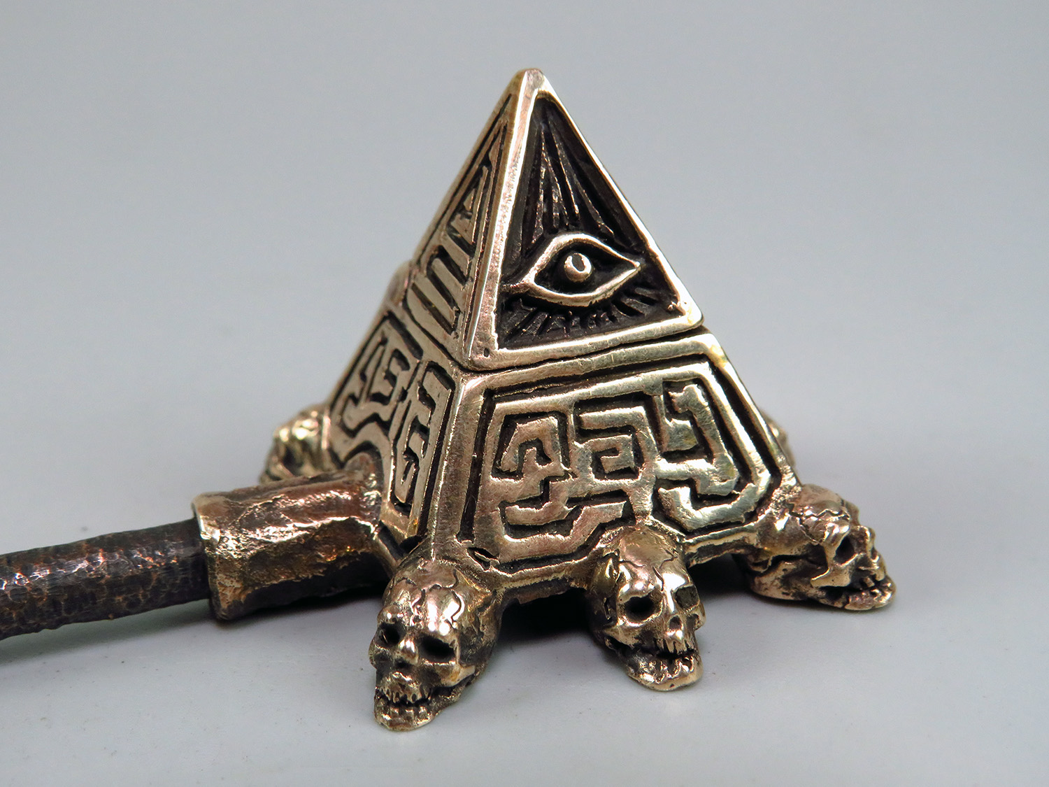 An esoteric bronze pipe inspired by ancient mysteries — featuring the All-Seeing Eye, the sacred Pyramid, and a Tree of Life growing from its base. This one-of-a-kind piece is more than a pipe: it's an artifact for those who see meaning in symbols, power in silence, and beauty in the strange.