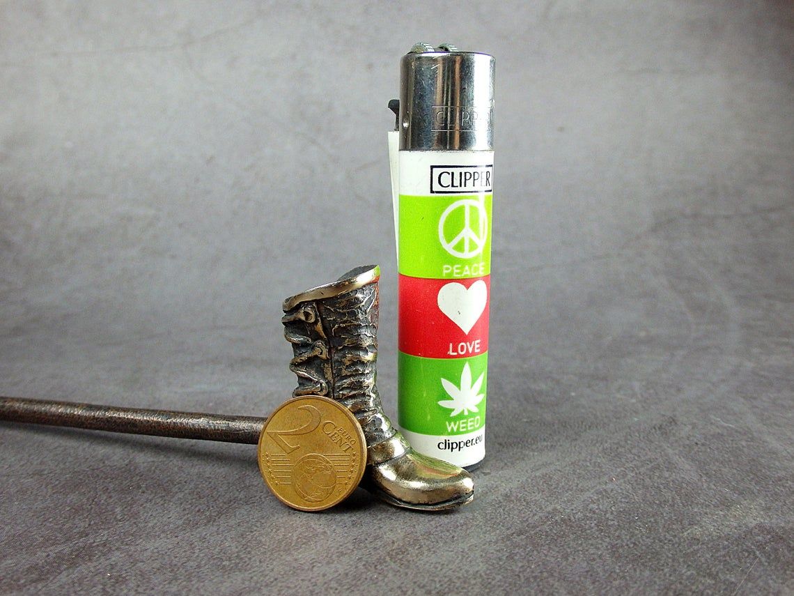 The original bronze smoking pipe in the shape of a boot. Please note - only part of the boot is used under the bowl.