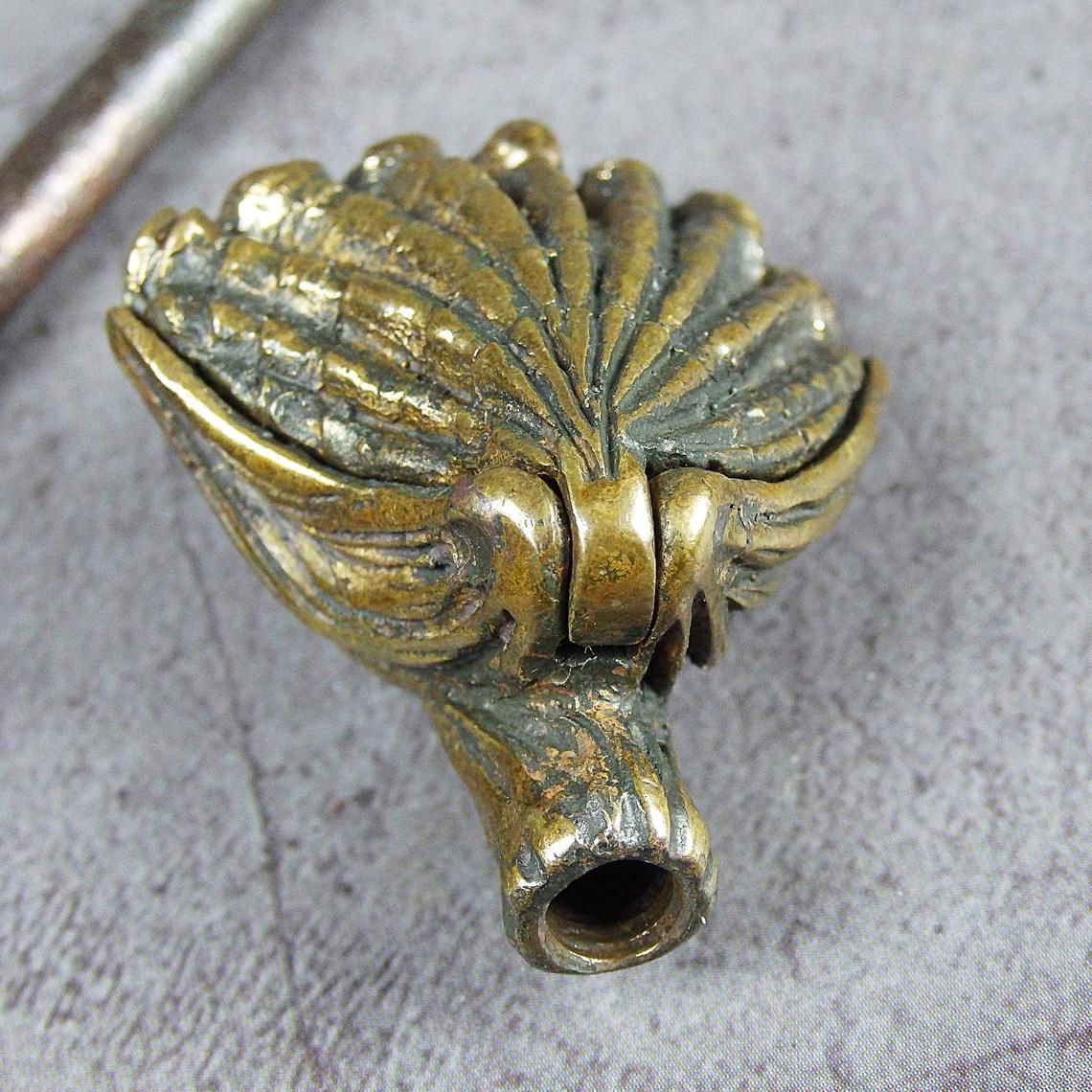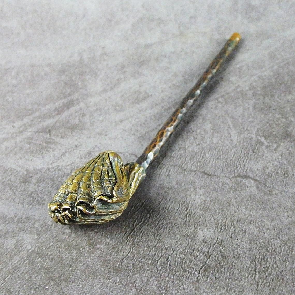 Bronze smoking pipe with lid, with bowl in the shape of scallop-shell. This is not only a smoking accessory, but also a wonderful souvenir. The mouthpiece is made of copper, it is screwed on, can have a length (from 3 to 30 cm) and a shape at the request of the buyer. The pipe is working, not decorative, the model is tested by the master.