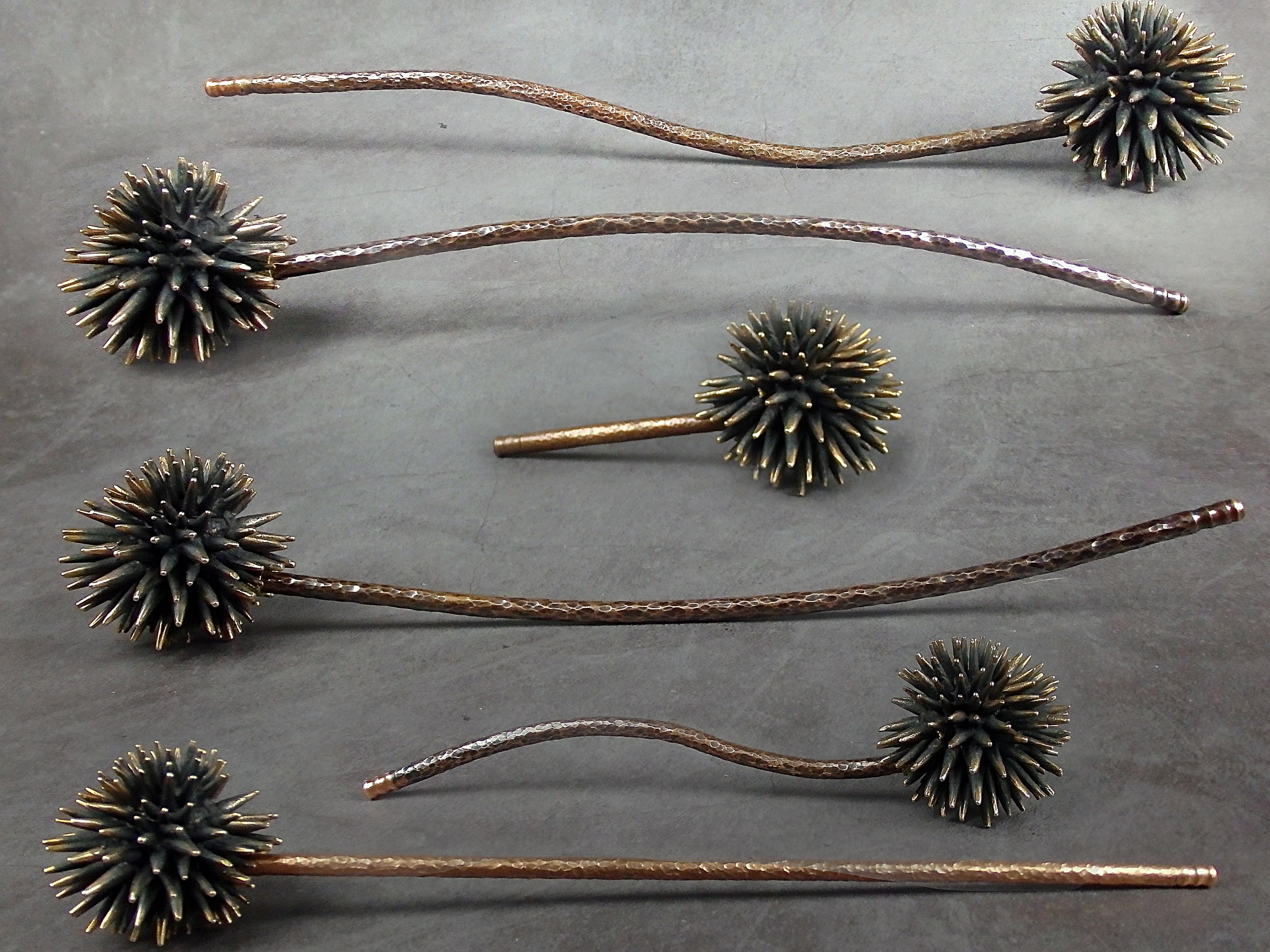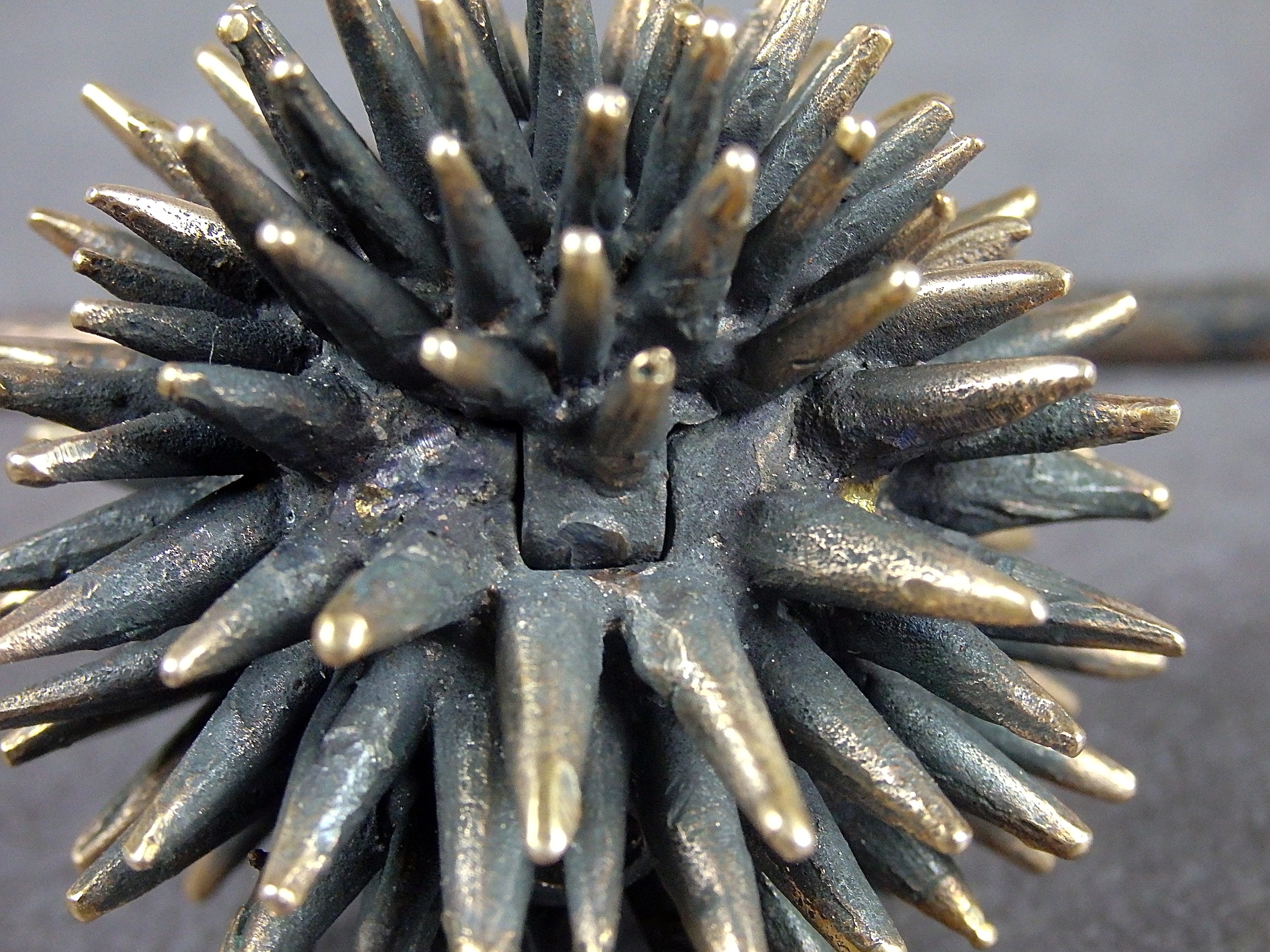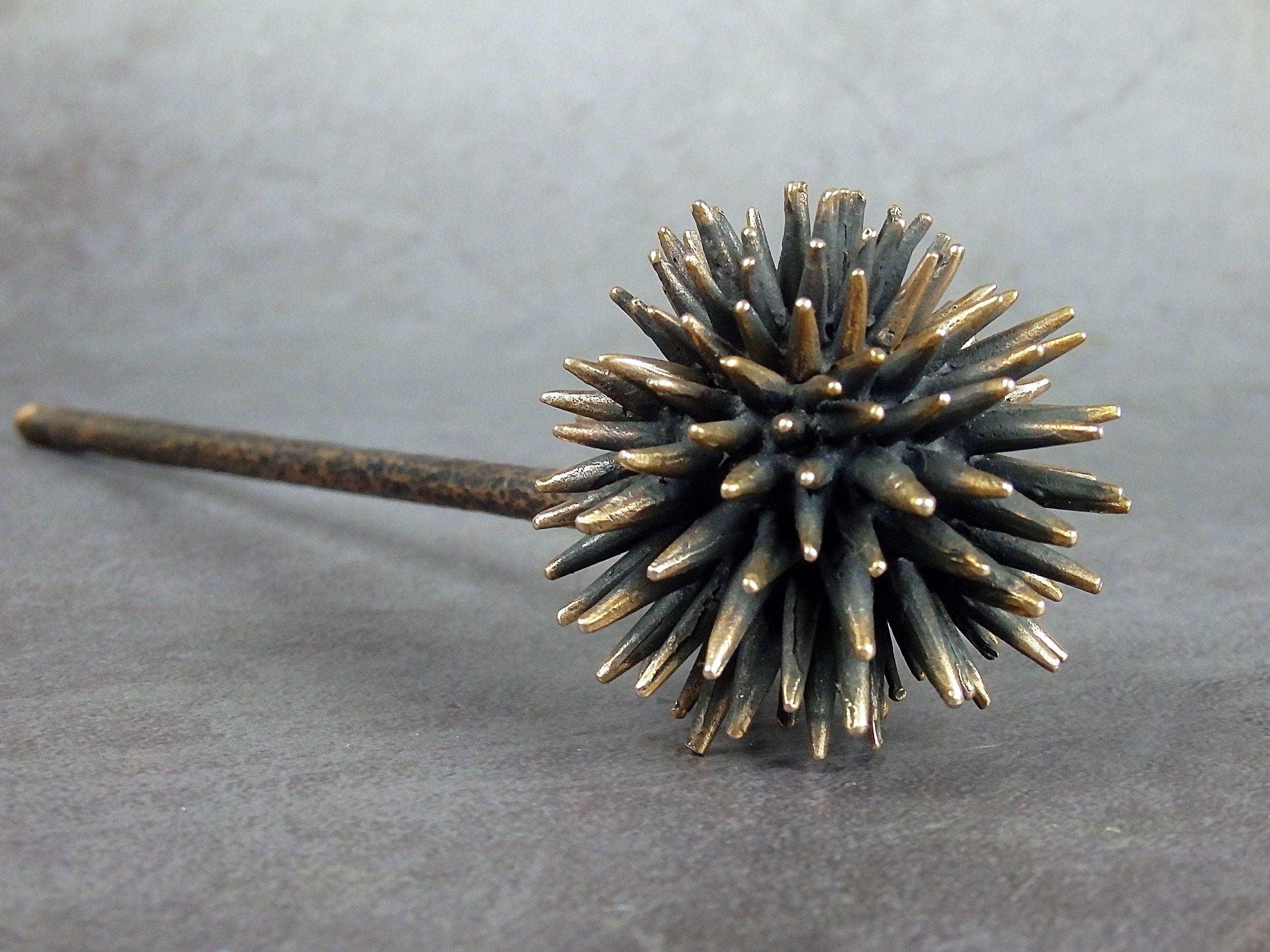 Bronze smoking pipe with a bowl in the form of a sea urchin. The mouthpiece is made of copper, it is screwed on, can have a length (from 3 to 30 cm) and a shape at the request of the buyer. The pipe is working, not decorative, the model is tested by the master.