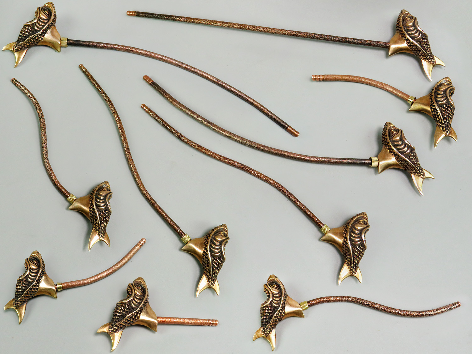 The mouthpiece is made of copper, it is screwed on, can have a length (from 5 to 30 cm) and a shape at the request of the buyer. The pipe is working, not decorative, the model is tested by the master.