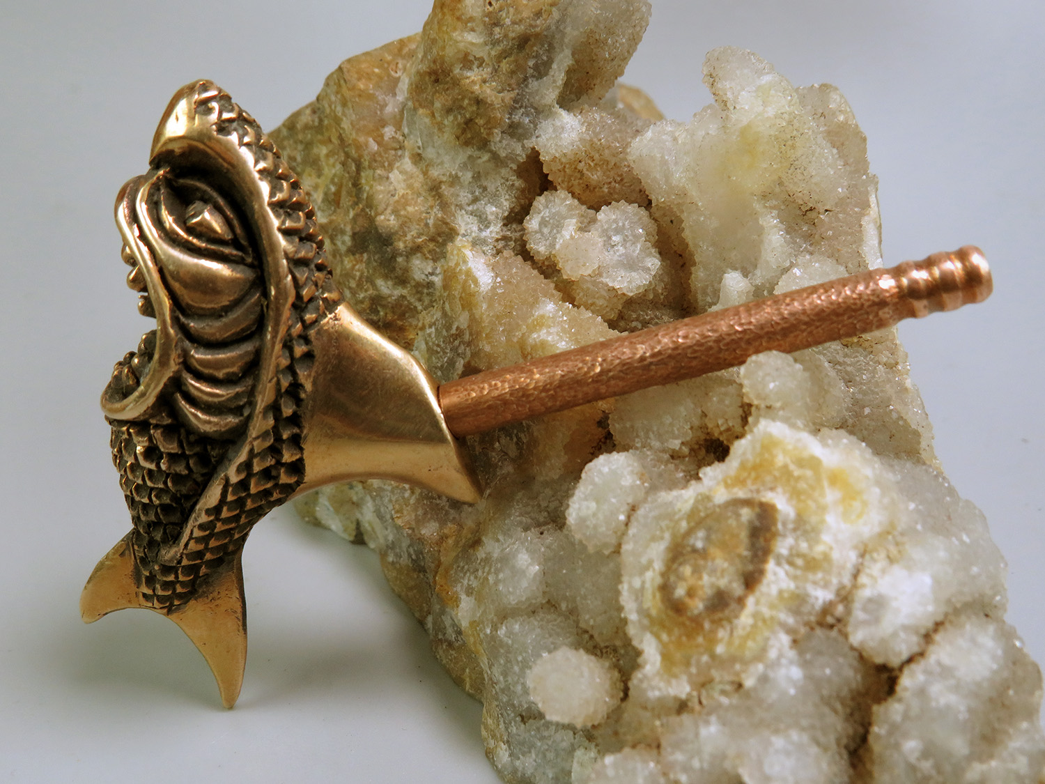 The pipe is made by hand (without using computer technology) from bronze according to the author's sketch.