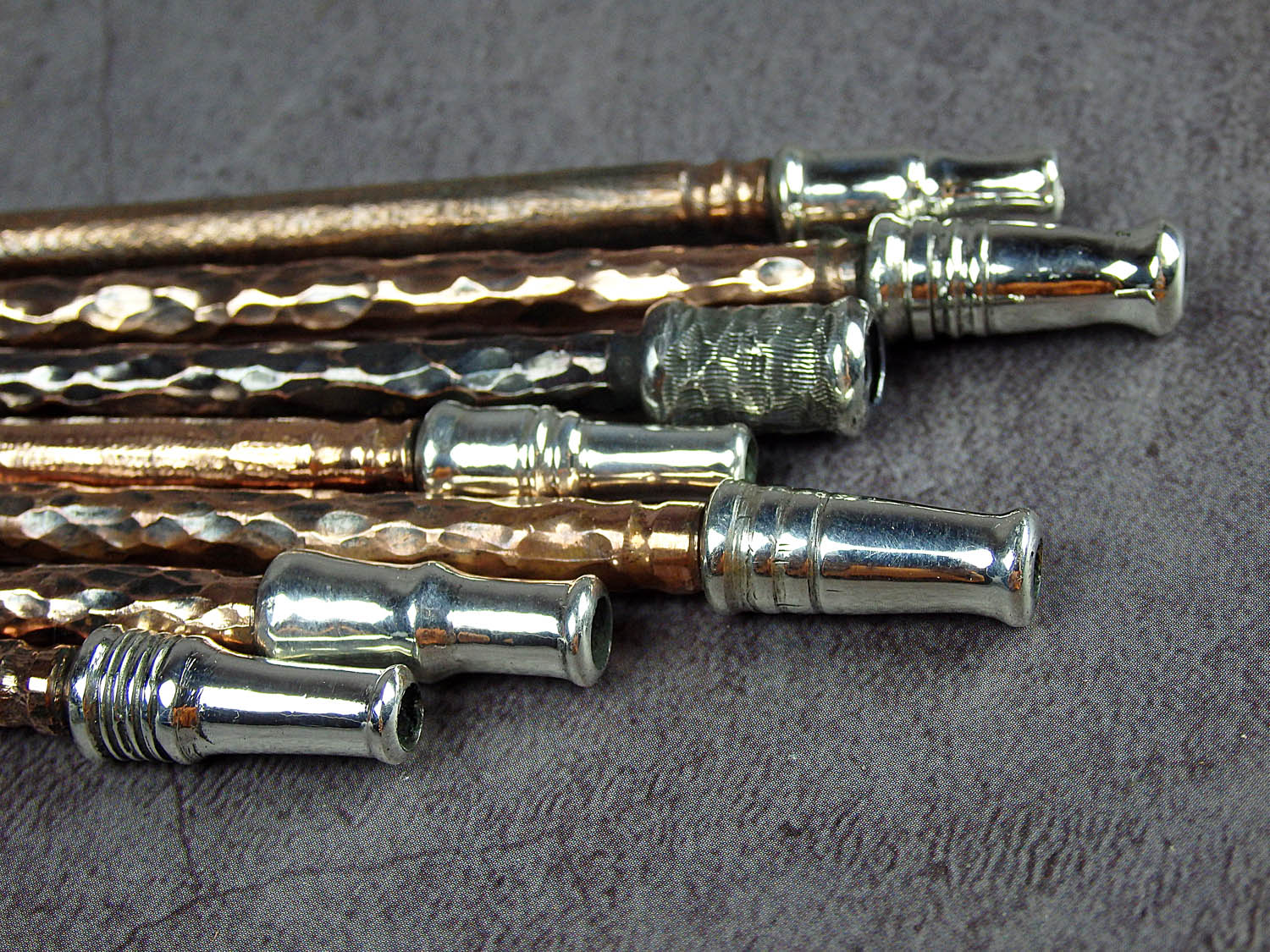 The mouthpiece is made of copper and silver, screwed on, can have a length (from 3 to 30 cm) and a shape at the request of the buyer. Note! When choosing a mouthpiece, keep in mind that this pipe can stand on a plane only with straight mouthpiece.