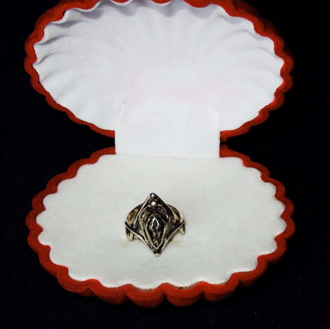 Silver ring with vagina.