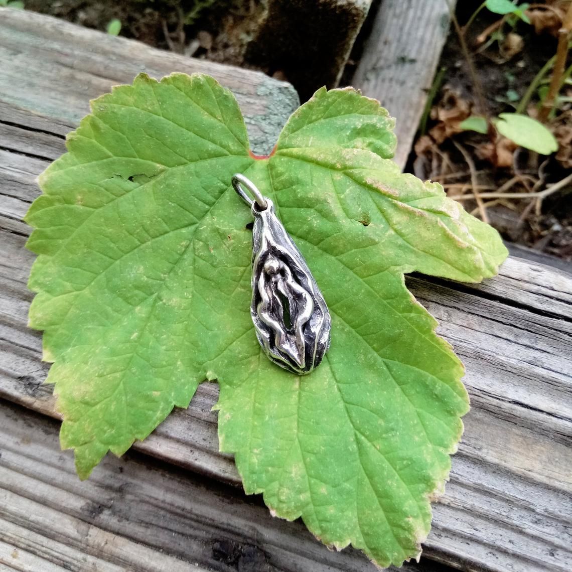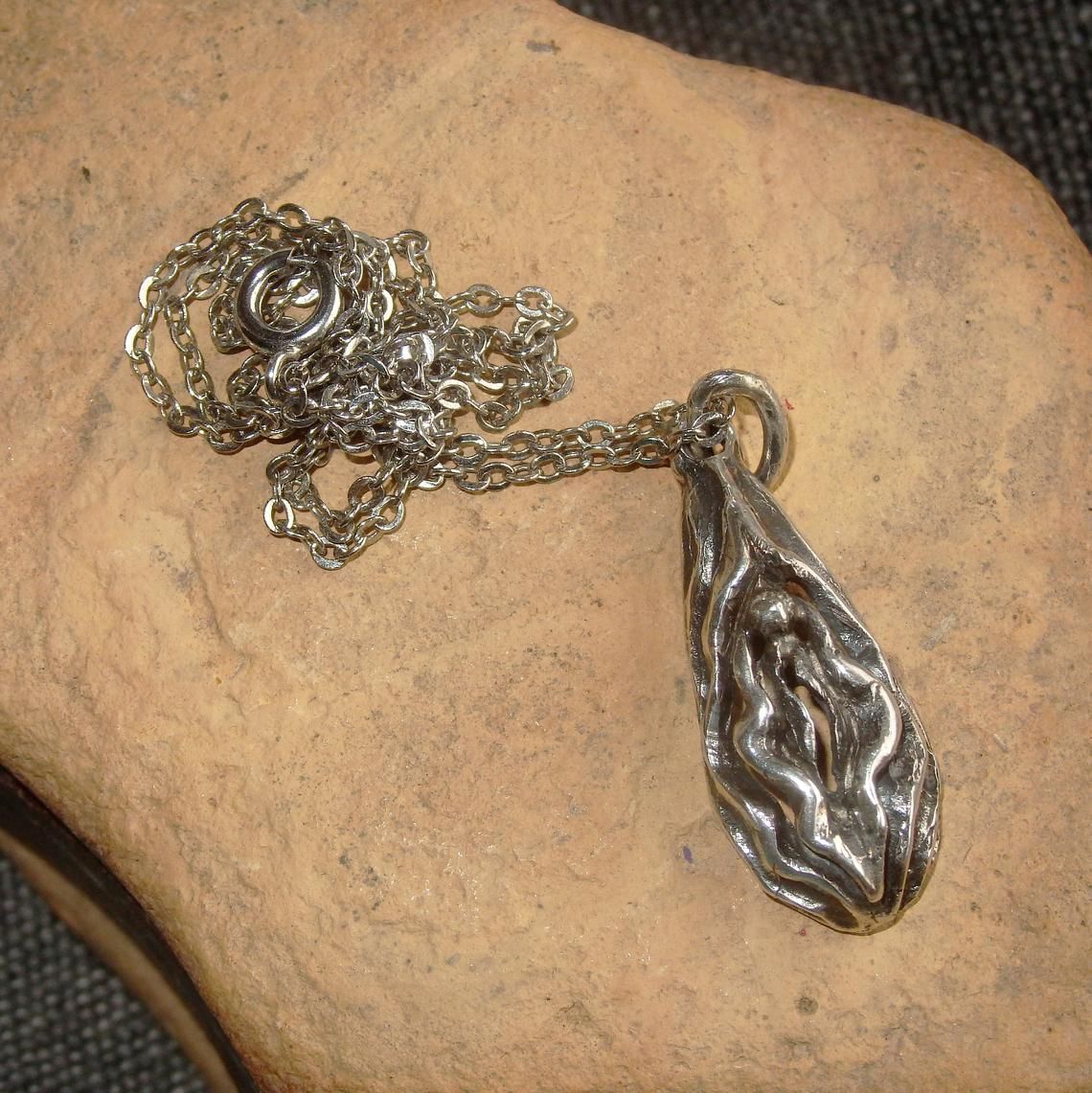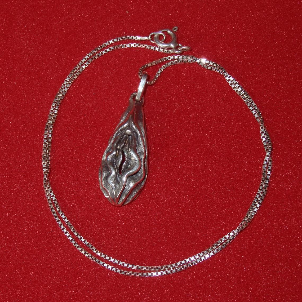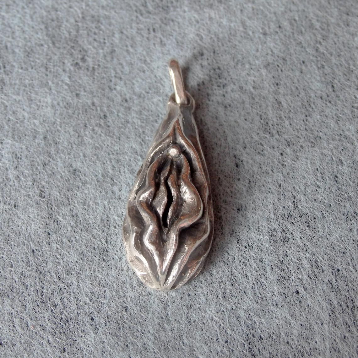 Light Vagina-shaped pendant made of silver.