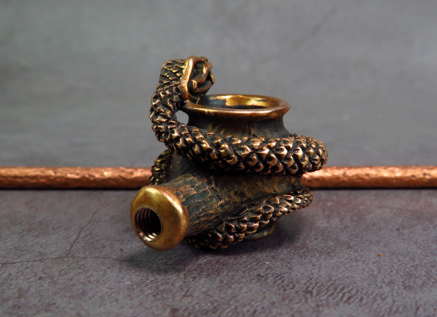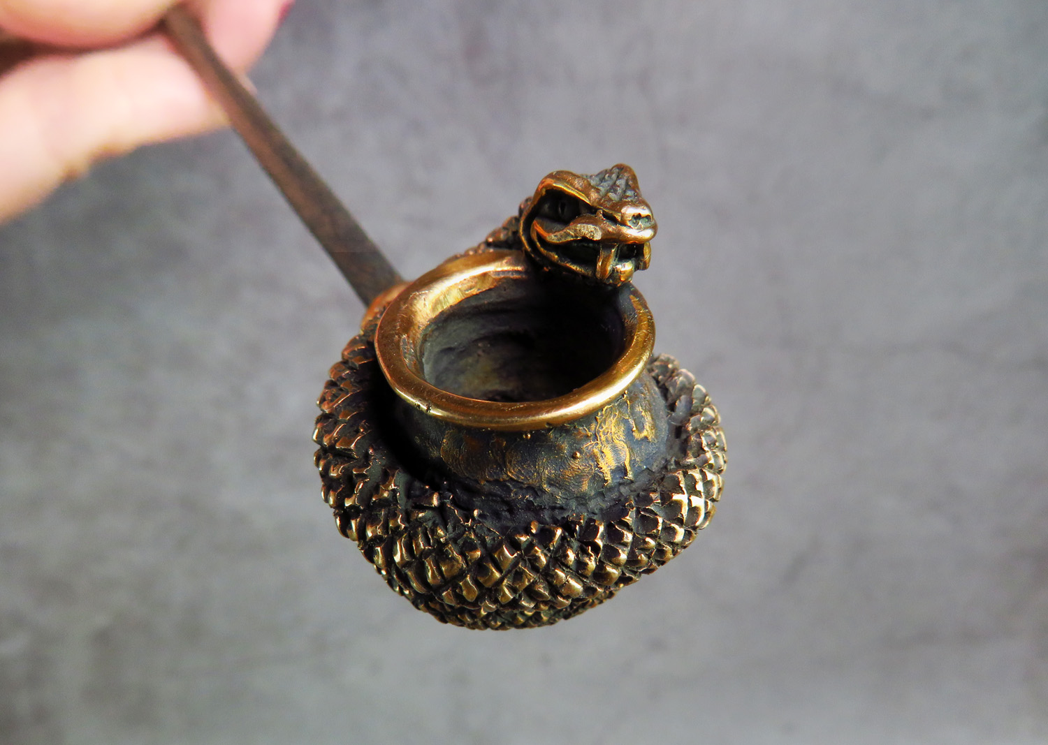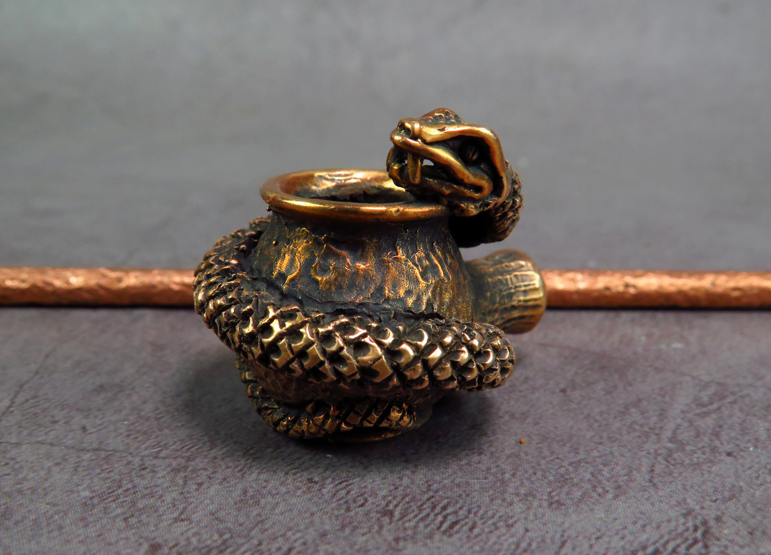 Pipe in the form of a snake hugging or guarding a pot (as you like) - the symbol of medicine, wisdom and Chinese New Year 2025. This pipe will be an excellent gift for physician, scientists, pharmacist, serpentologists and nature lovers.