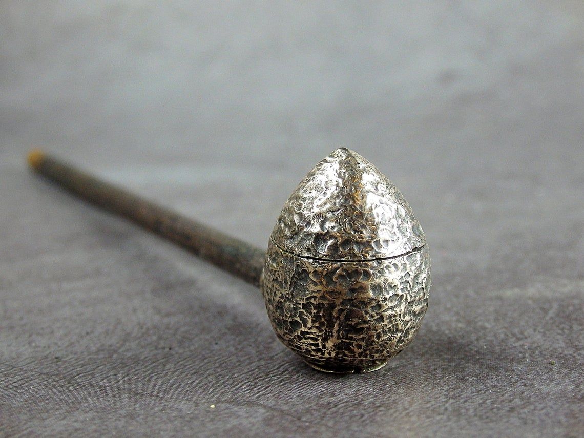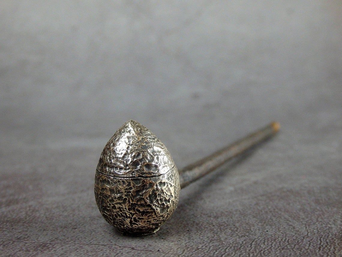 Smoking pipe with a bowl in the form of a small snake egg. The egg has an opening lid and this is not only a smoking accessory, but also a wonderful souvenir. The mouthpiece is made of copper, it is screwed on, can have a length (from 3 to 30 cm) and a shape at the request of the buyer. The pipe is working, not decorative, the model is tested by the master.