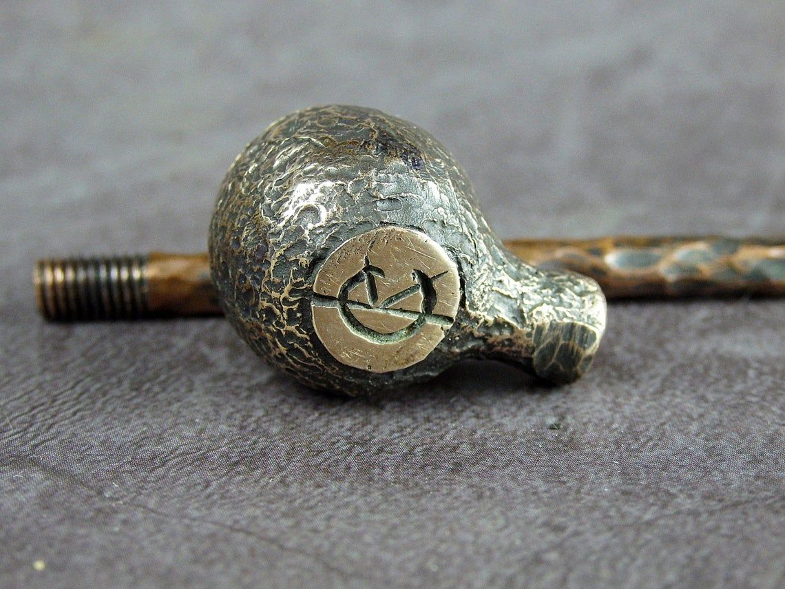 To make this item, a wax model was cut out by hand. Then, using the lost wax method, bronze parts were cast.