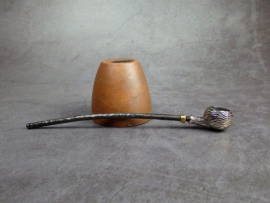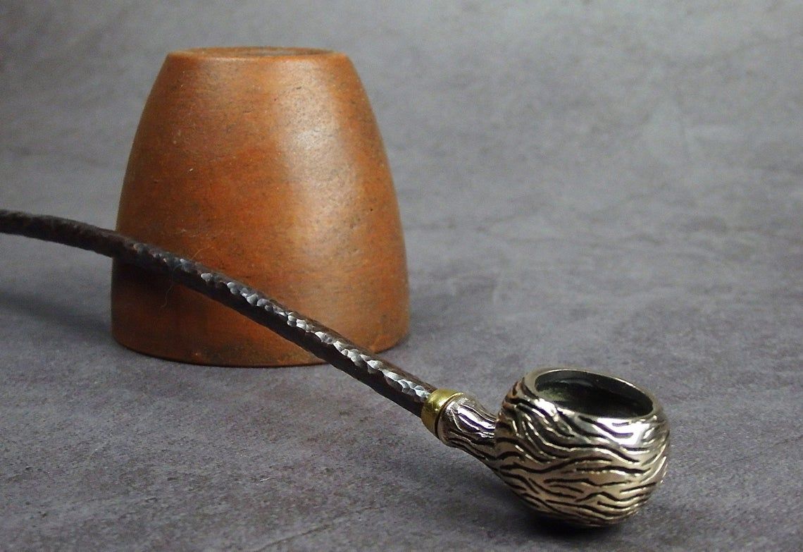 Freehand churchwarden bronze pipe with a round bowl-sphere. The mouthpiece is made of copper, it is screwed on, can have a length (from 5 to 30 cm) and a shape at the request of the buyer. The pipe is working, not decorative, the model is tested by the master.