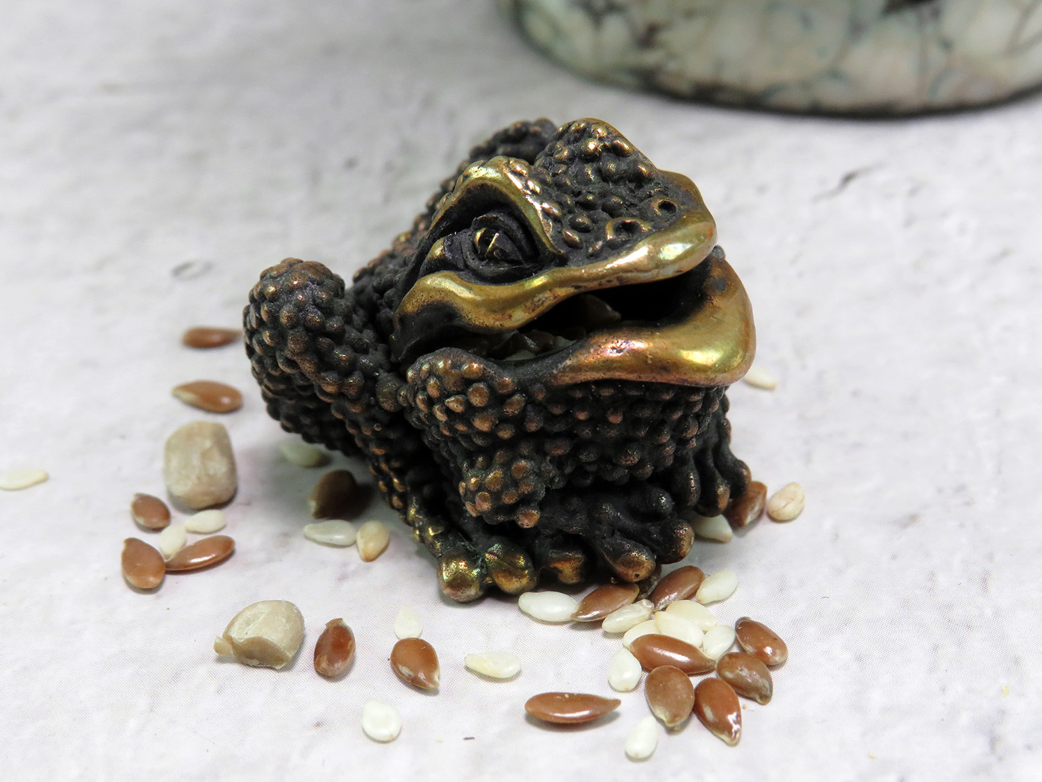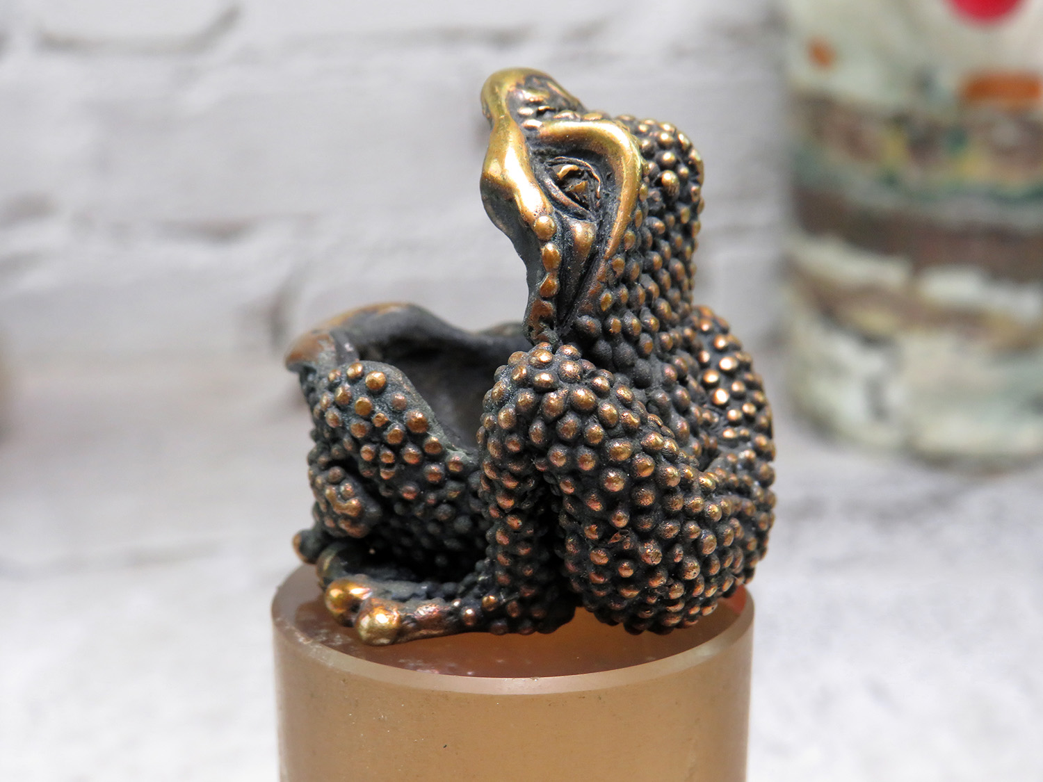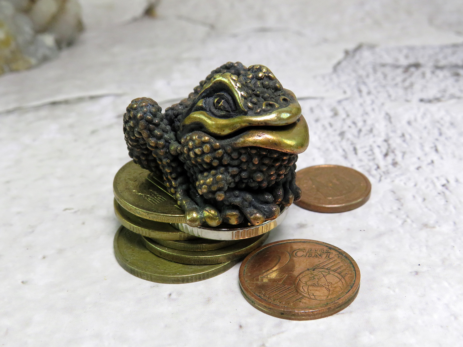Miniature bronze casket in the shape of a frog. Or a frog in the form of a casket. If you put a coin in her mouth, you get an excellent Feng Shui money frog - a symbol of wealth and prosperity.