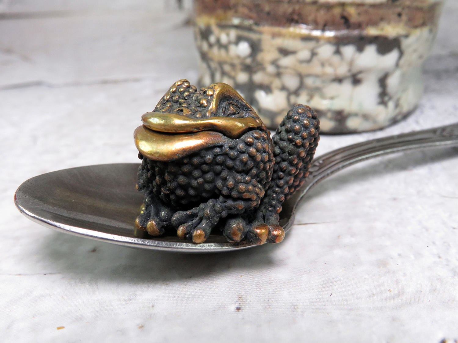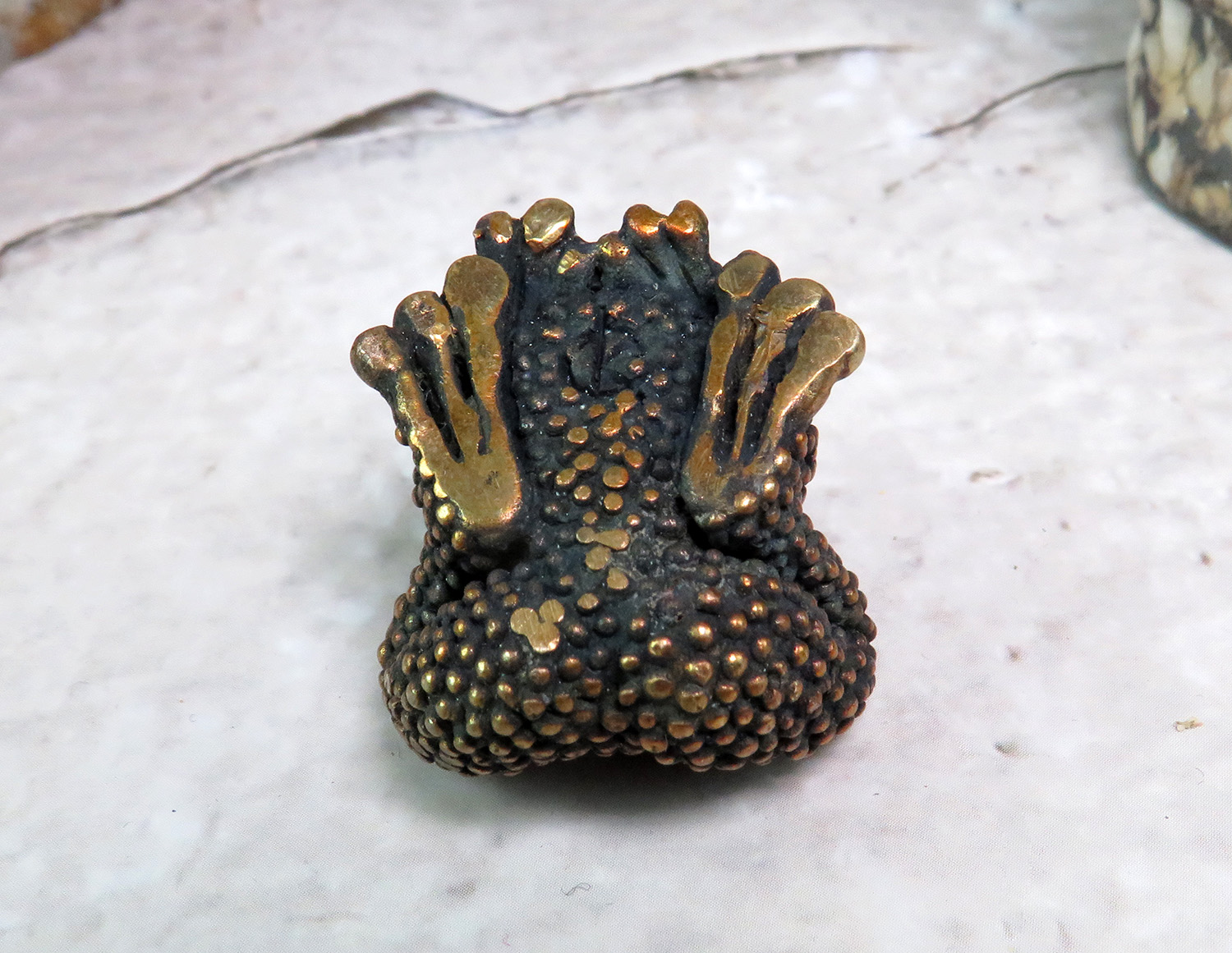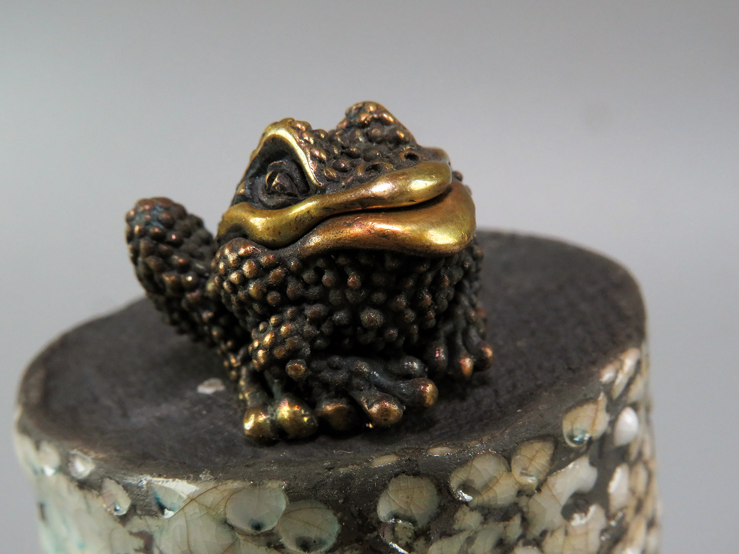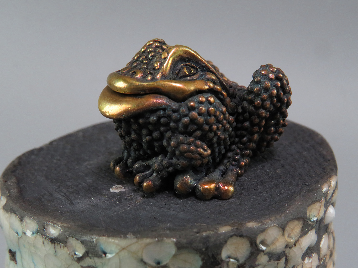 Miniature bronze casket in the shape of a frog. Or a frog in the form of a casket. If you put a coin in her mouth, you get an excellent Feng Shui money frog - a symbol of wealth and prosperity.