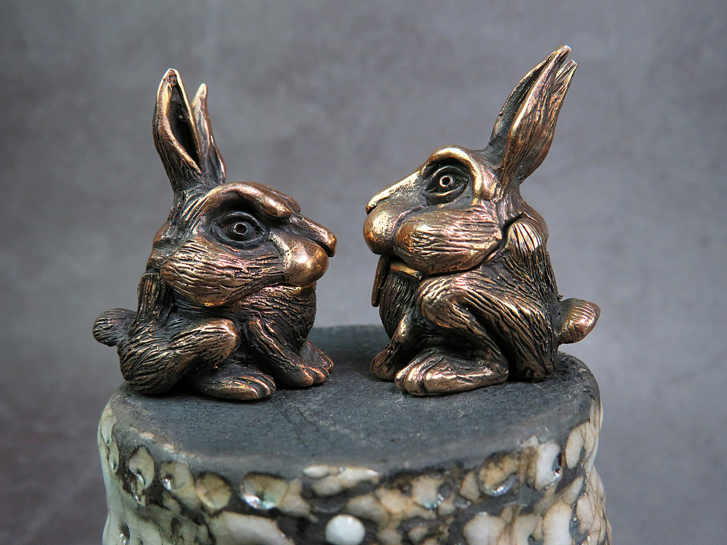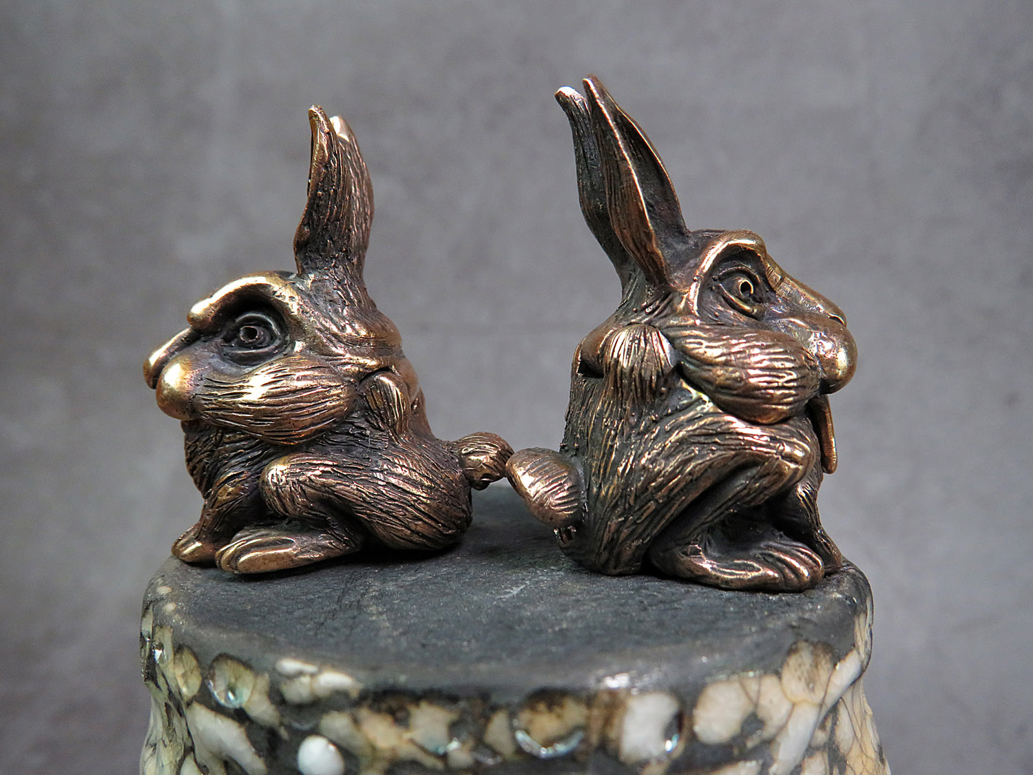 The rabbits is made by hand (without using computer technology) from bronze according to the author's sketch.