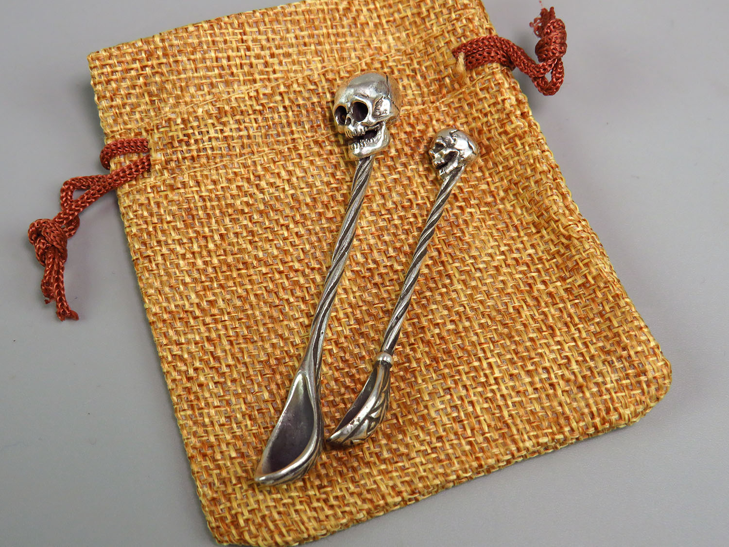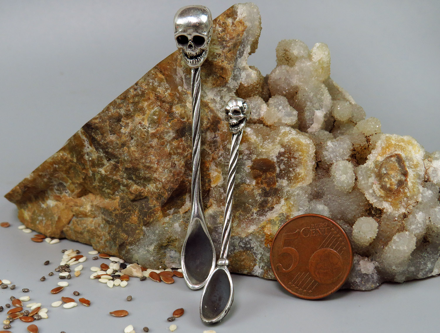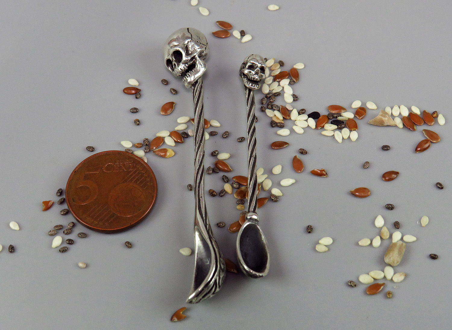 Miniature silver spoon with a skull on the handle. It will be an excellent gift for goths, role-players and all lovers of necro-aesthetics.