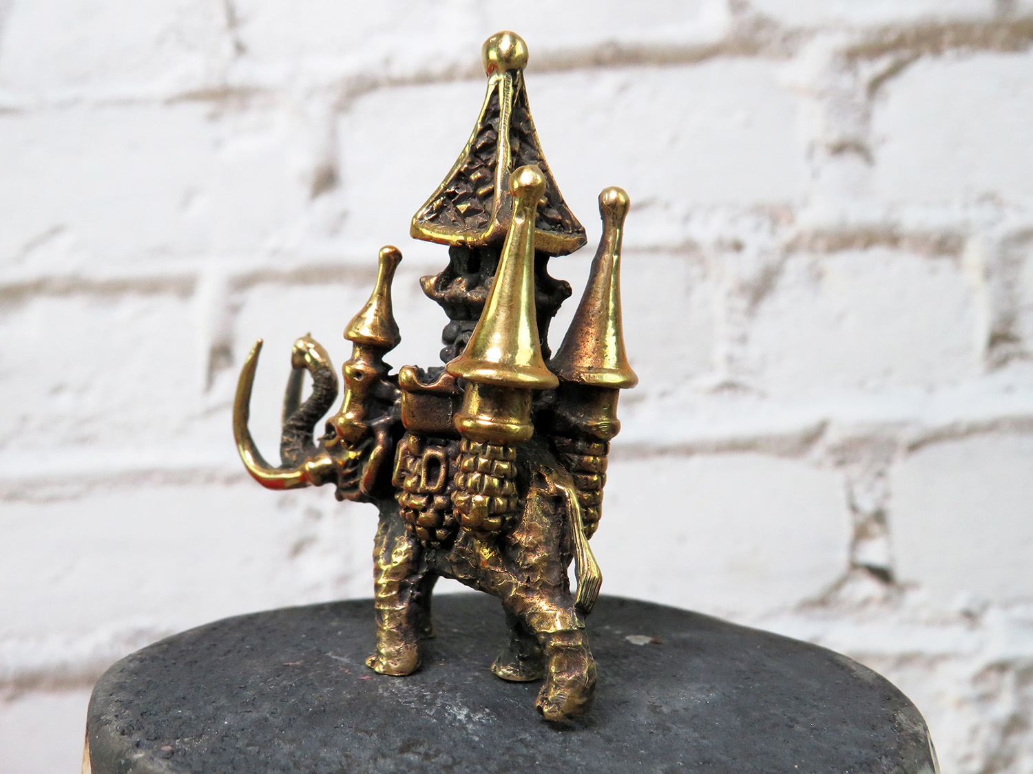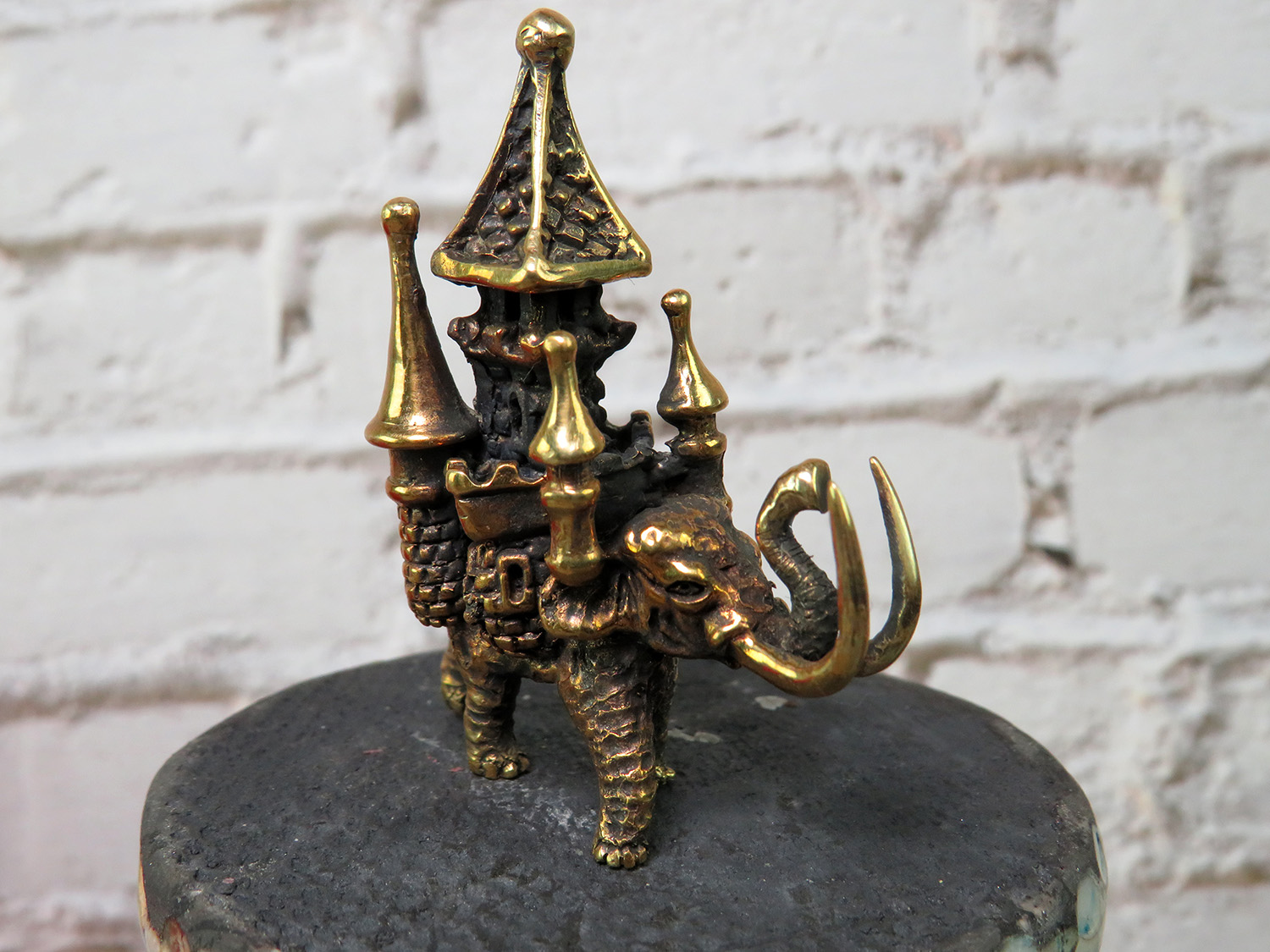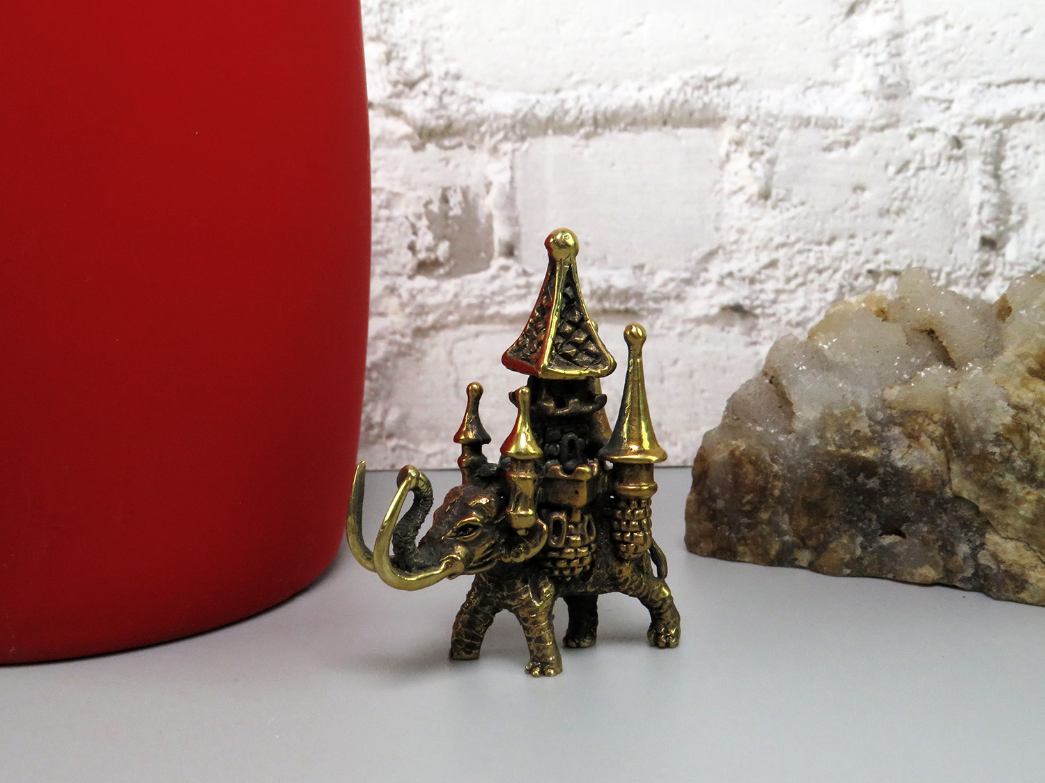 A miniature bronze elephant with a castle on its back. This amazing animal symbolizes the famous words of Cicero "All that is mine I carry with me".