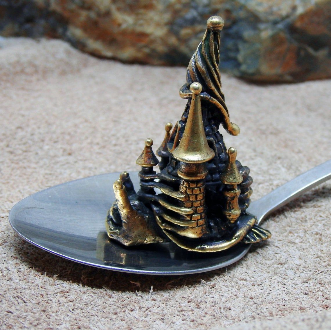A miniature figurine of bronze. The first snail from the rock-family with horns in the form of a rock-gesture "Goat" and and with a personal castle on the back.