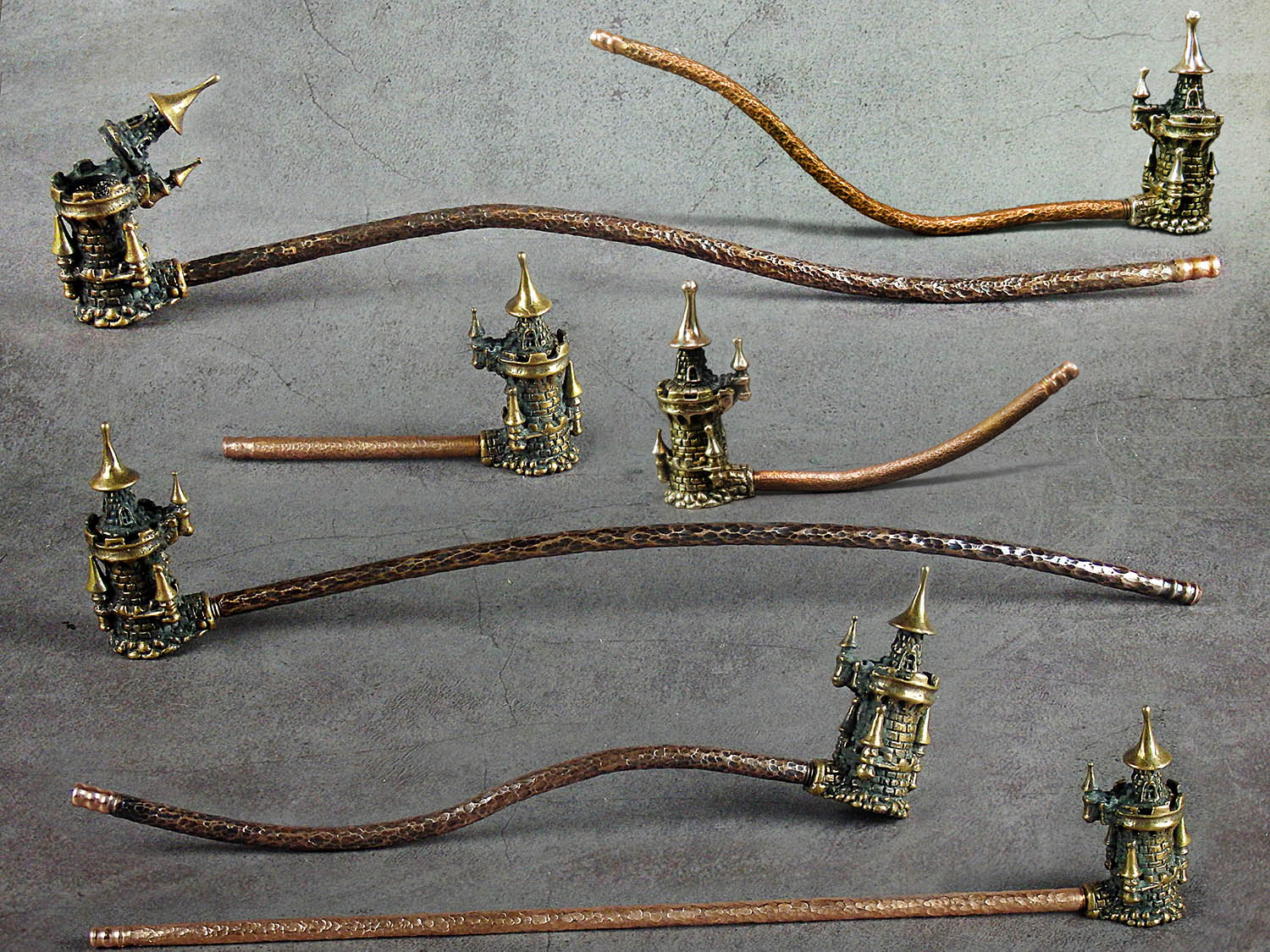 The mouthpiece is made of copper, it is screwed on, can have a length (from 3 to 30 cm) and a shape at the request of the buyer. The pipe is working, not decorative, the model is tested by the master.