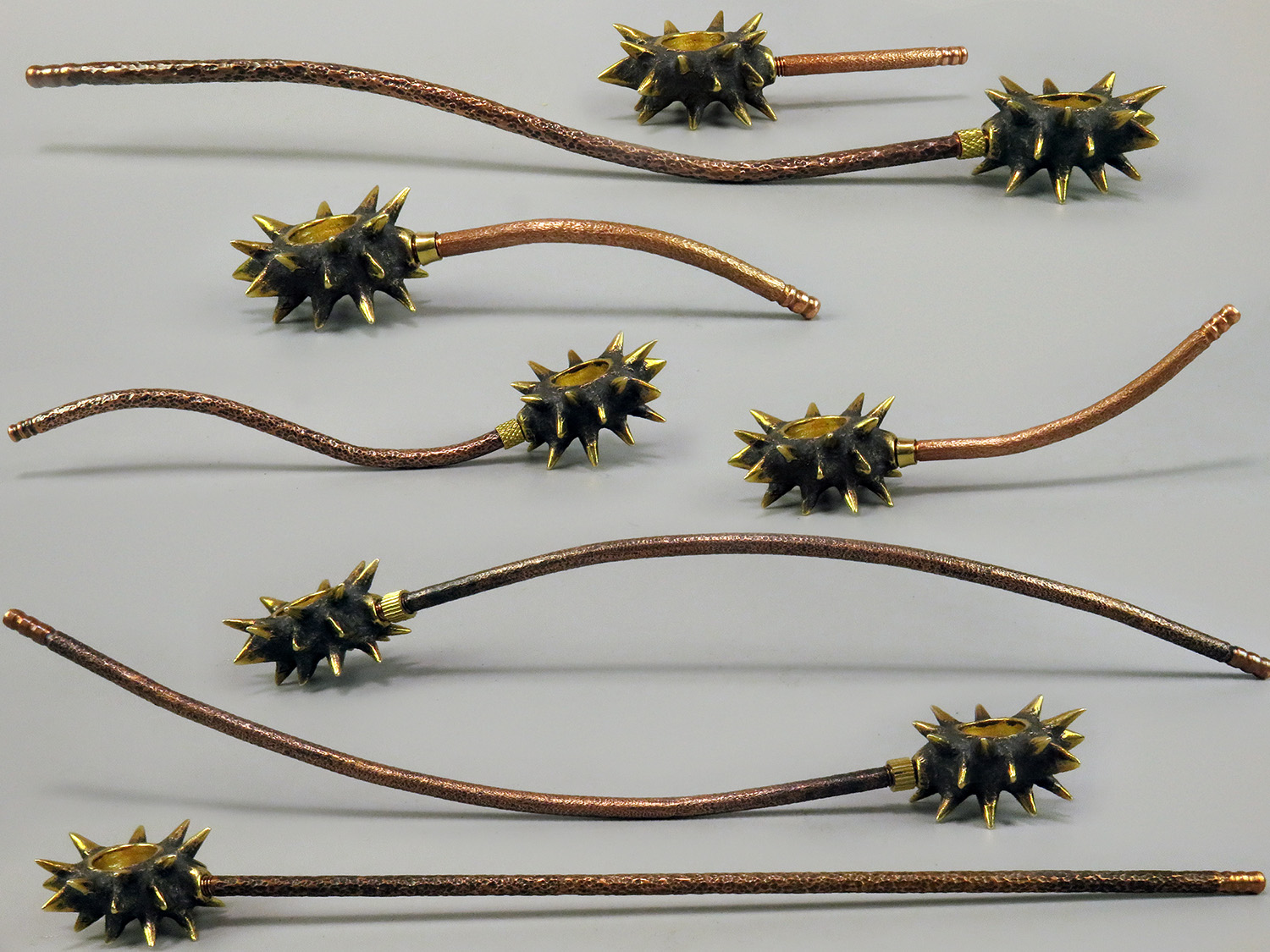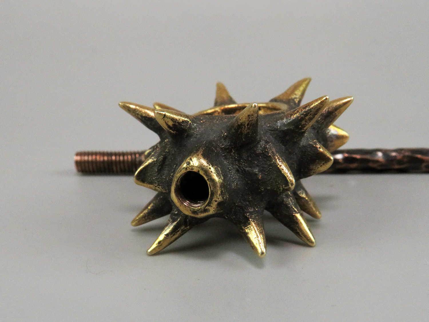 Bronze smoking pipe with a bowl in the shape of a sea creature - sea cucumbers. The mouthpiece is made of copper, it is screwed on, can have a length (from 3 to 30 cm) and a shape at the request of the buyer. The pipe is working, not decorative, the model is tested by the master.