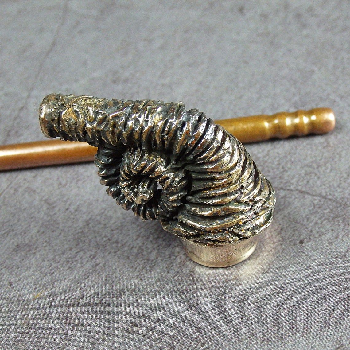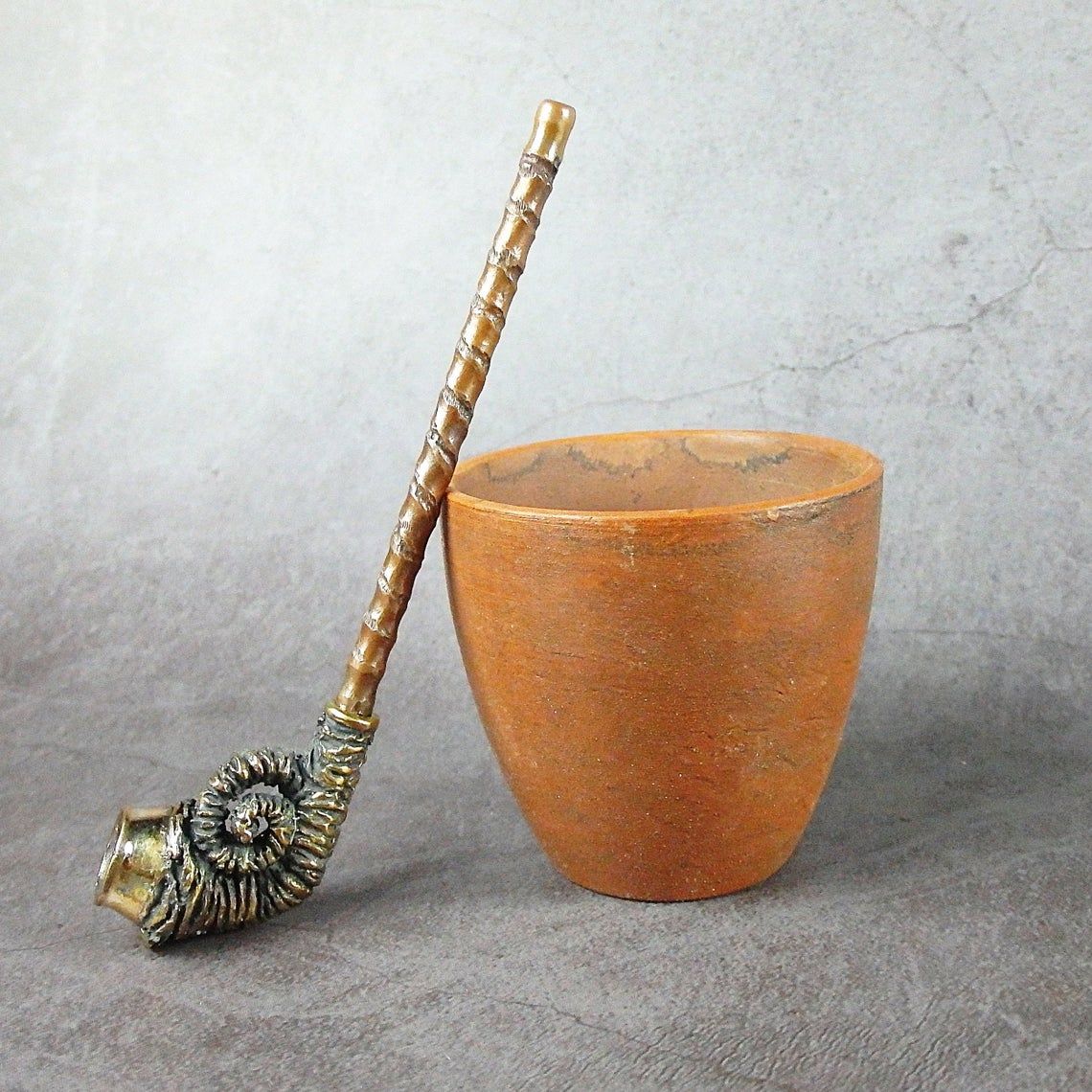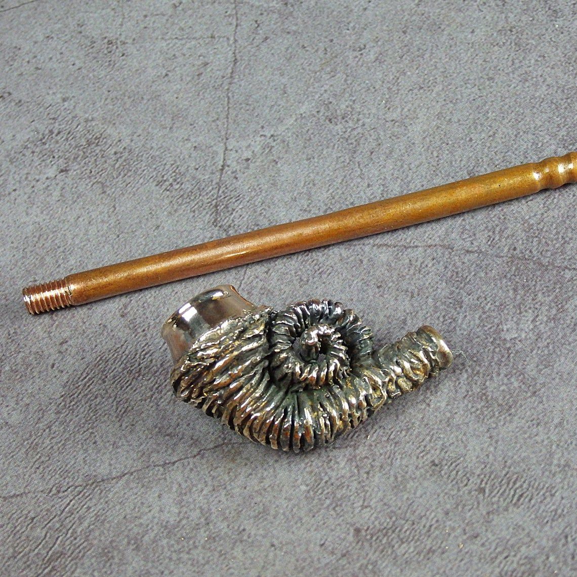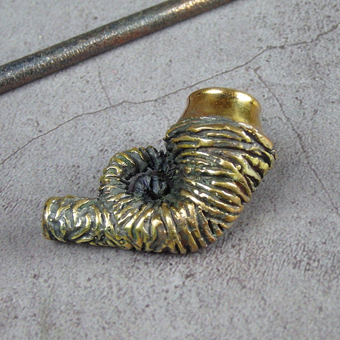 Bronze smoking pipe with a bowl in the shape of a French horn or shells. This pipe will be a great gift for brass musicians.