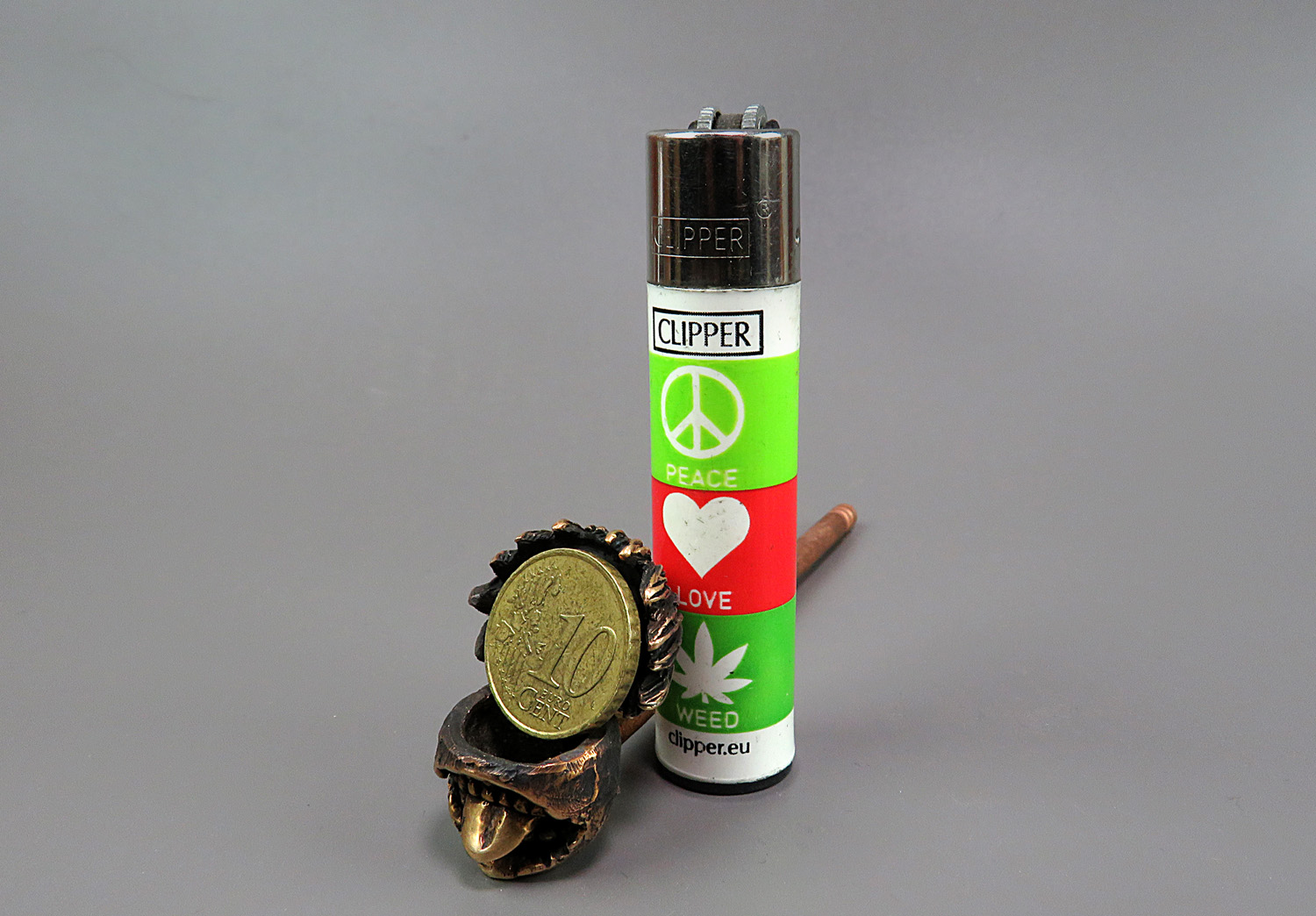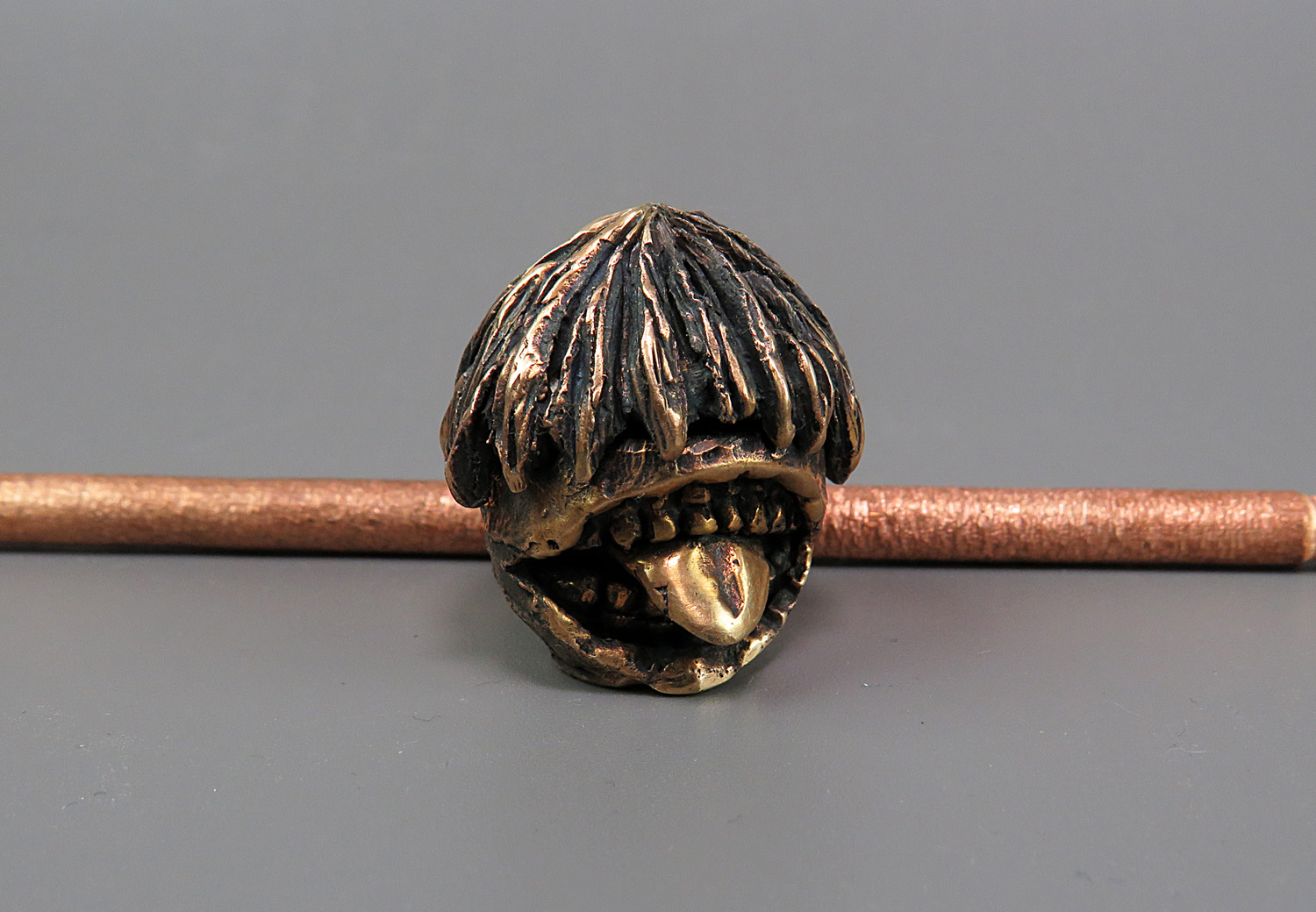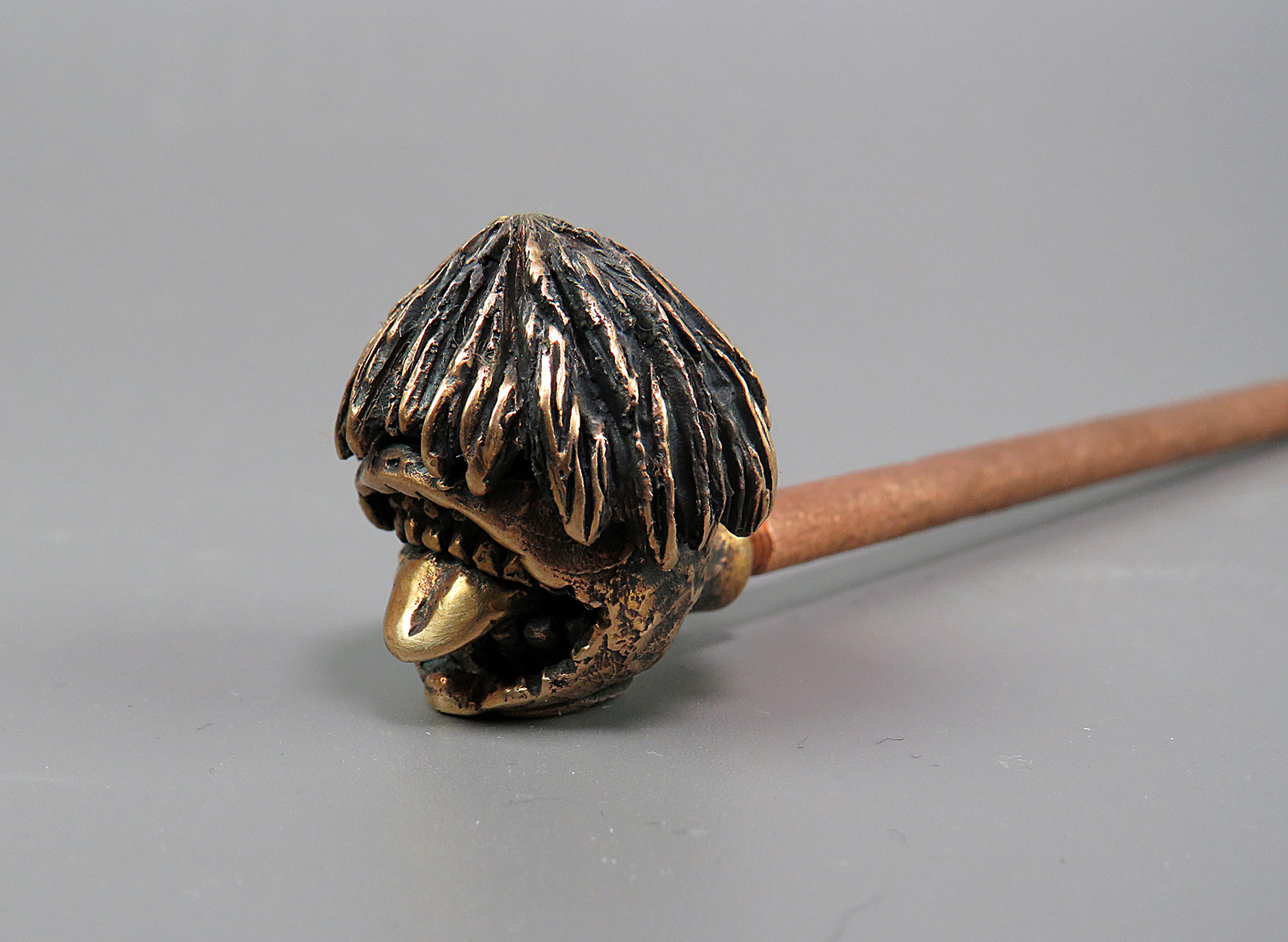 Bronze pipe in the form of a strange and slightly creepy urban dark fantasy character. He has no face, but has a huge toothy mouth with a long tongue, and he will obviously appeal to connoisseurs of werewolf monsters, mysticism, and modern Japanese mythology.