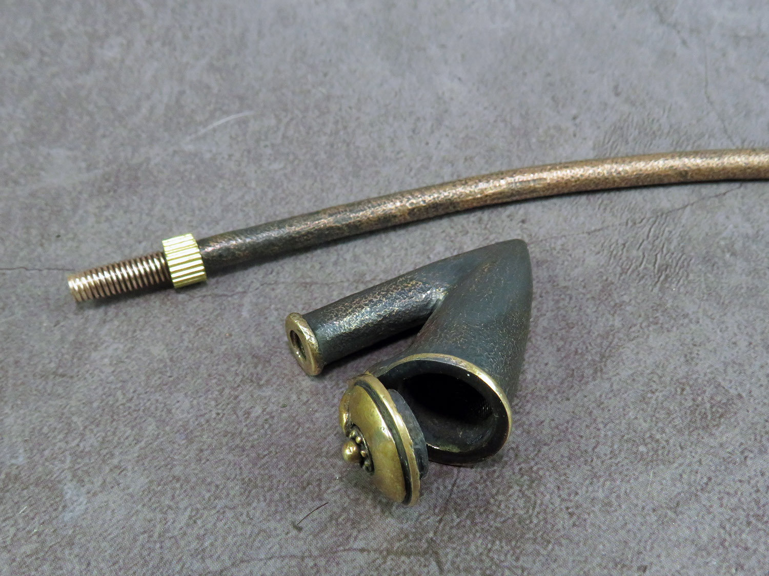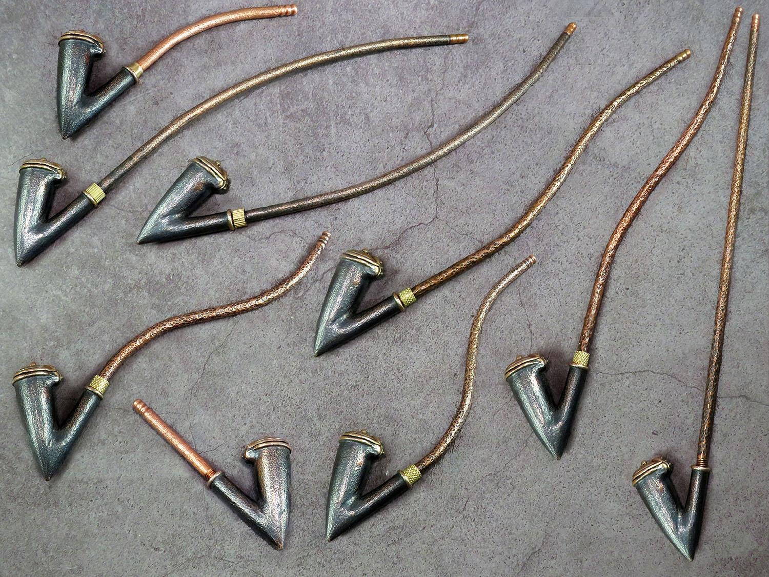 The mouthpiece is made of copper, it is screwed on, can have a length (from 5 to 30 cm) and a shape at the request of the buyer. The pipe is working, not decorative, the model is tested by the master.