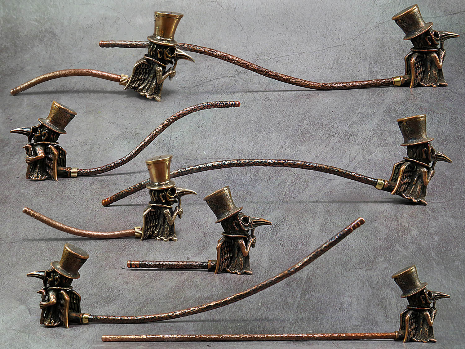 The mouthpiece is made of copper, it is screwed on, can have a length (from 3 to 30 cm) and a shape at the request of the buyer. The pipe is working, not decorative, the model is tested by the master.
