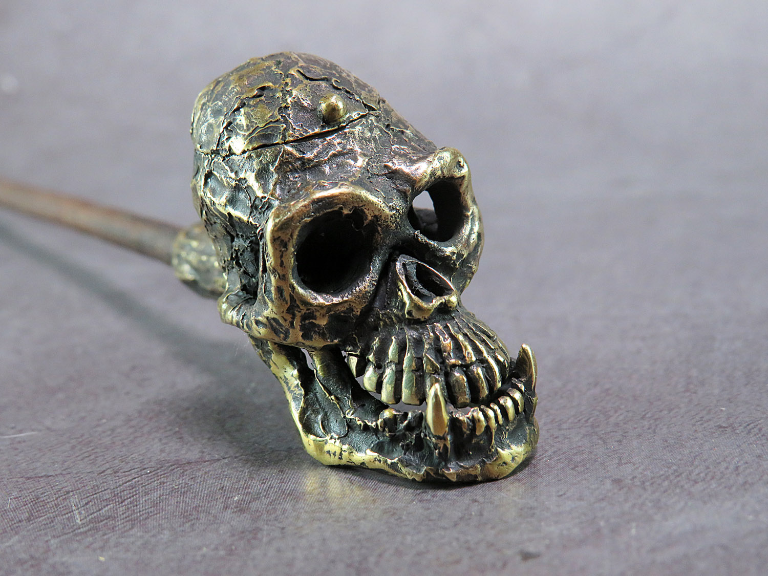 The skull is made by hand (without using computer technology) from bronze according to the author's sketch.