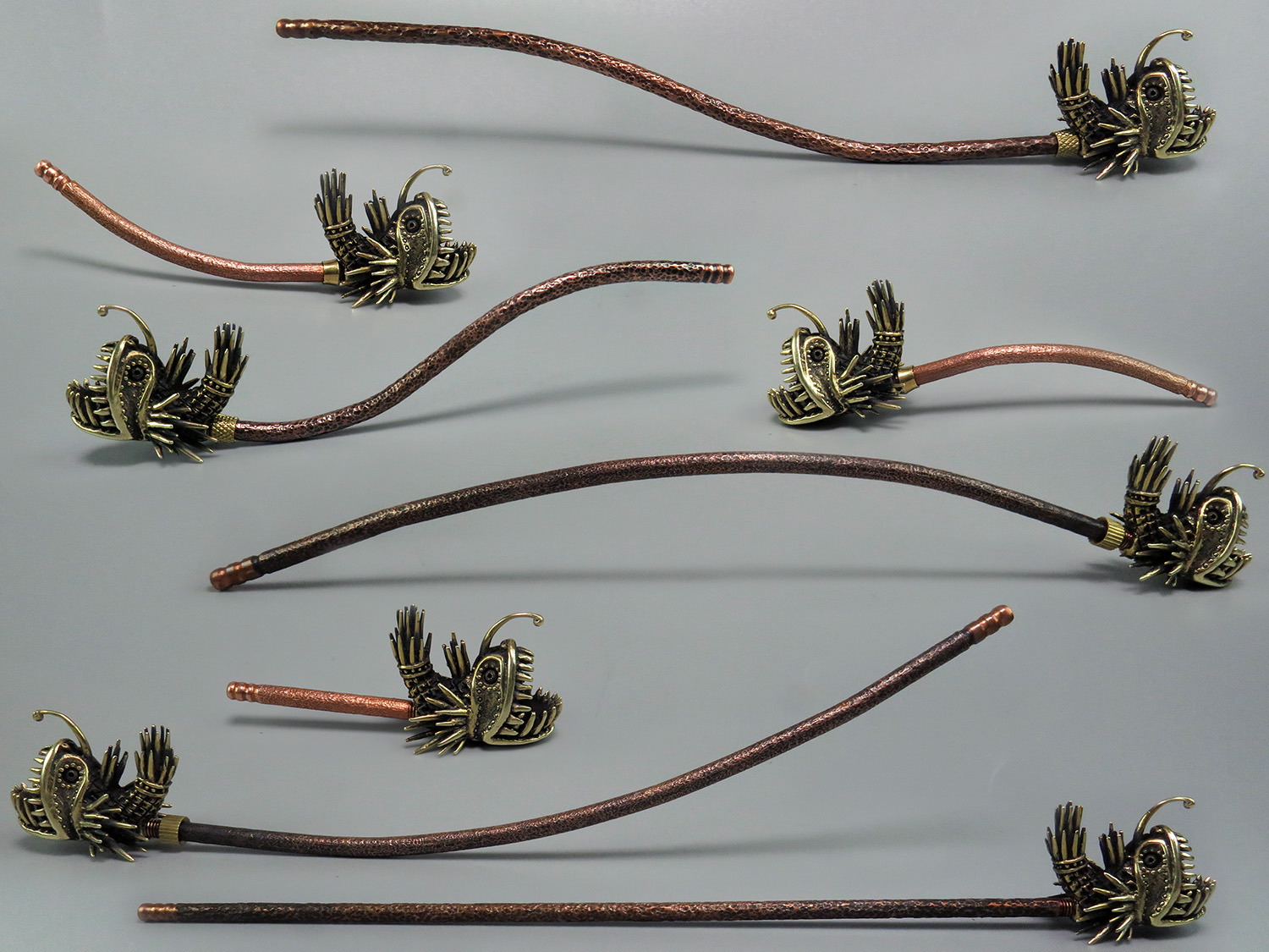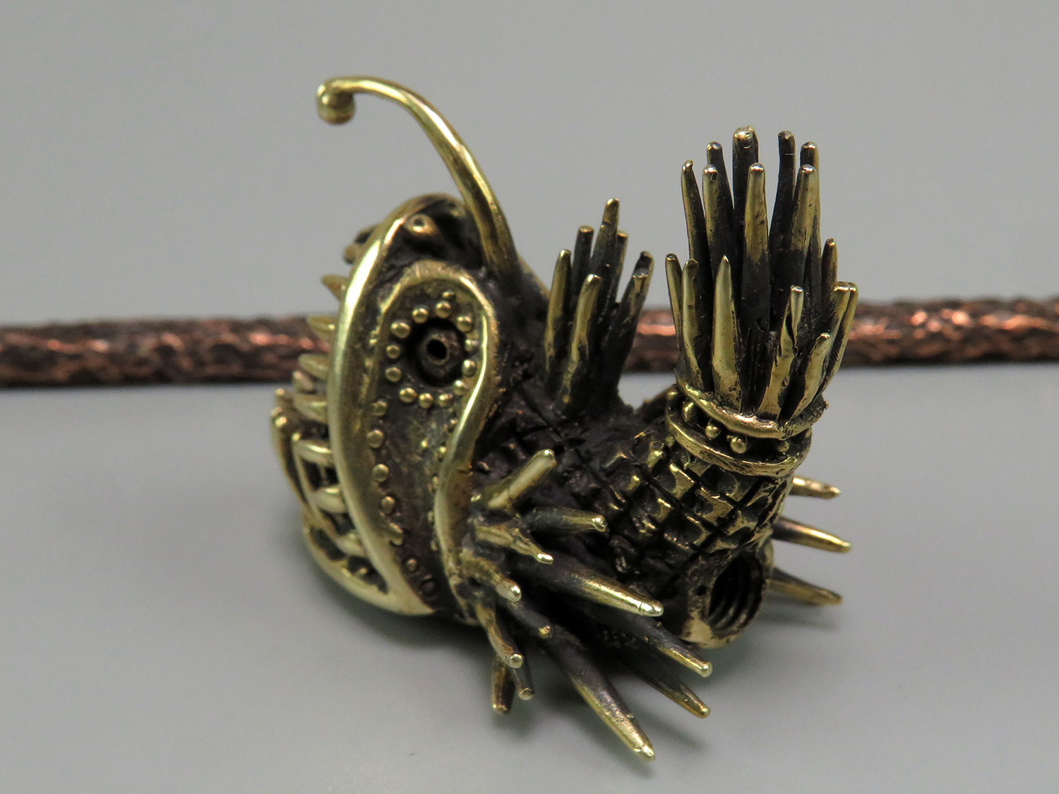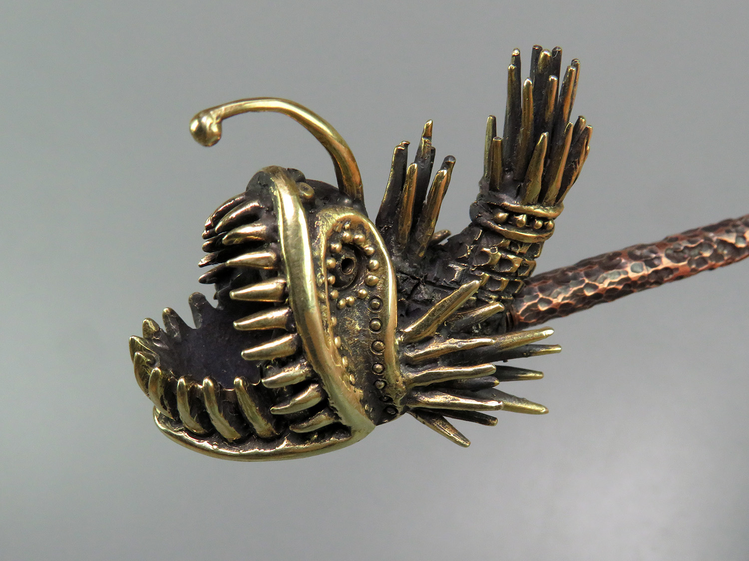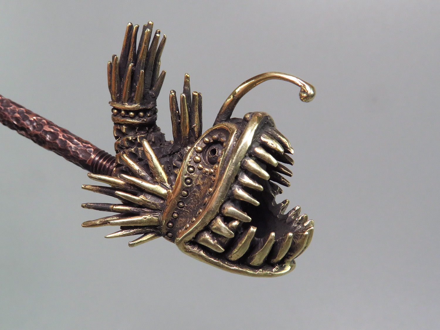 Bronze smoking pipe with a bowl in the shape of Anglerfish - an original handcrafted souvenir for lovers of deep-sea monsters, science and adventure. The mouthpiece is made of copper, it is screwed on, can have a length (from 3 to 30 cm) and a shape at the request of the buyer. The pipe is working, not decorative, the model is tested by the master.
