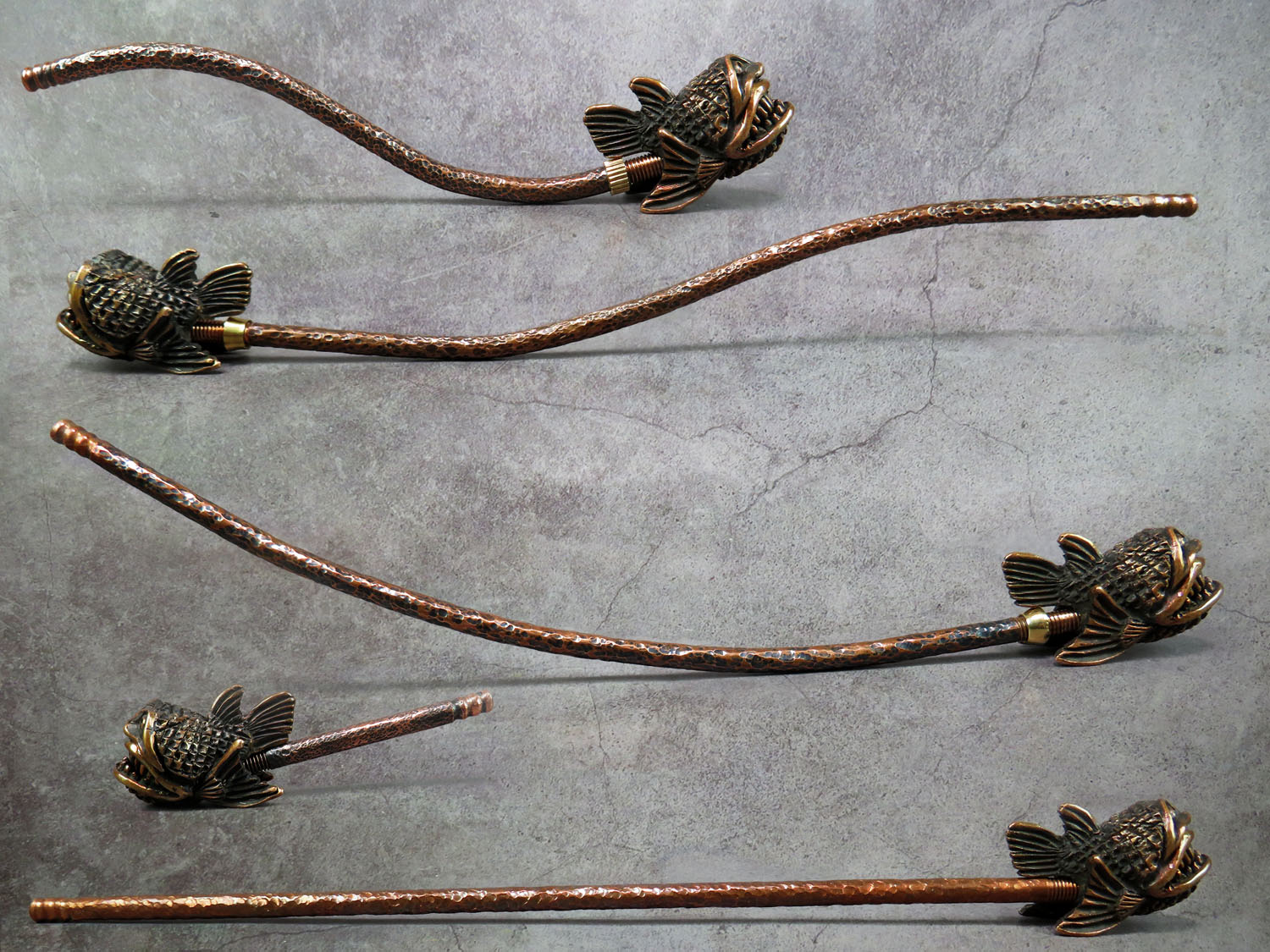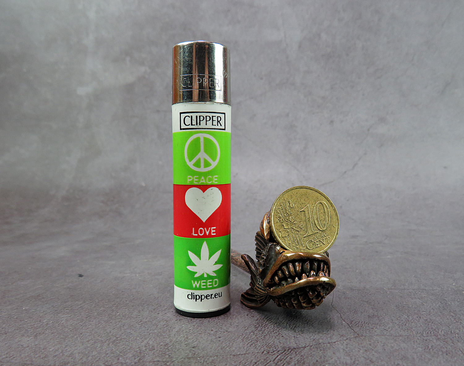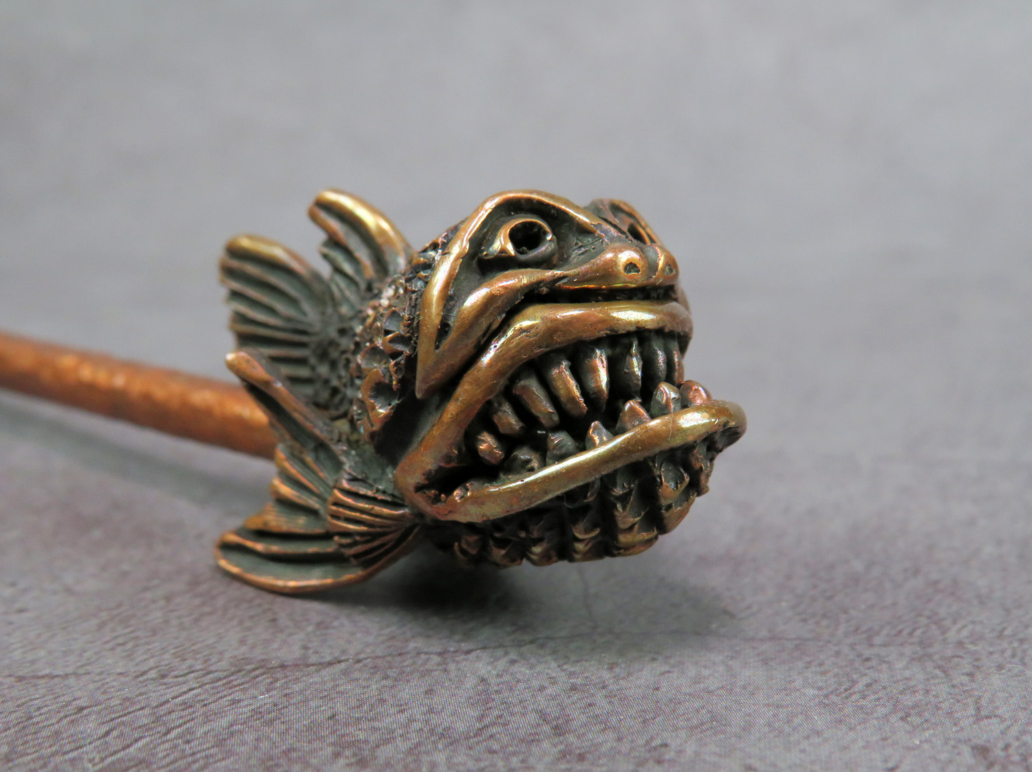 A handmade smoking pipe in the form of an evil toothy sea creature. The mouthpiece is made of copper, it is screwed on, can have a length (from 3 to 30 cm) and a shape at the request of the buyer.