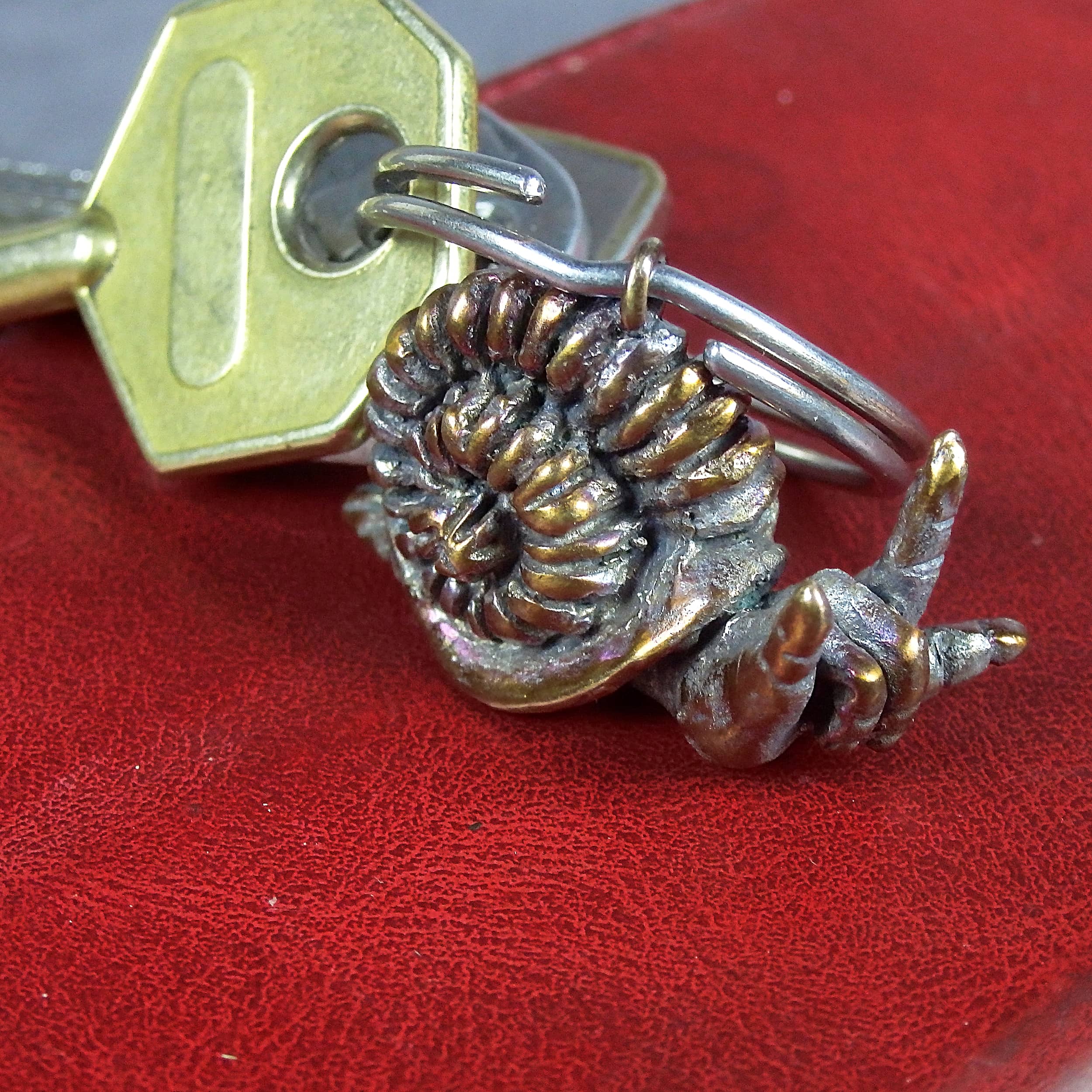 A little bronze snail that says "I love you" in sign language. ILY's gesture is the most popular and has long ago been used outside the boundaries of American Sign Language, so this keychain will be a great little token for a loved one.