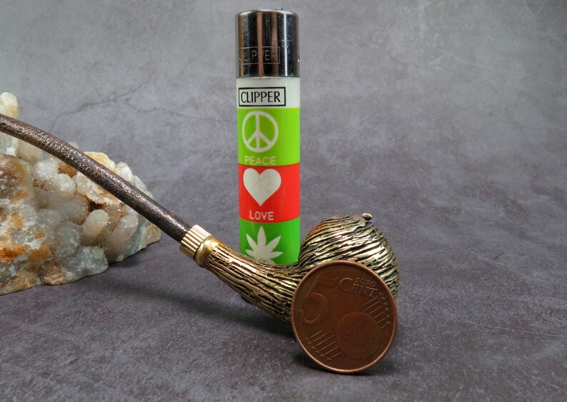 Small round pipe in retro style. The mouthpiece is made of copper (with copper wire), it is screwed on, can have a length (from 7 to 20 cm) at the request of the buyer. The pipe is working, not decorative, the model is tested by the master.